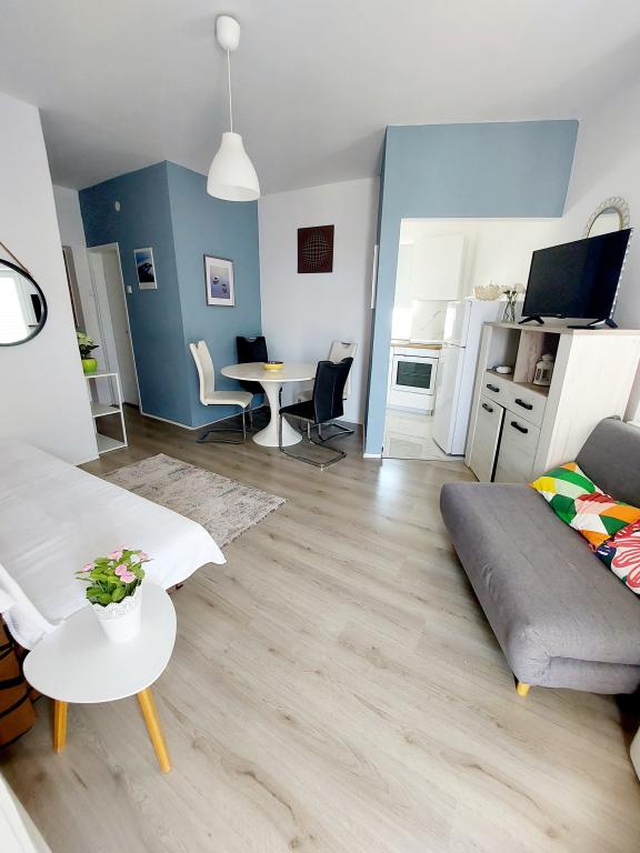 Zůstali jsme v bytě týden. Velmi milý hostitel, vždy k dispozici. Byt je vzdušný, pěkně zařízený, dobře vybavený, čistý a má vše, co potřebujete, abyste se cítili pohodlně. Pláž a promenáda jsou velmi blízko, centrum je cca 10 minut pěšky. V okolí je několik kaváren a restaurací. Všechna doporučení