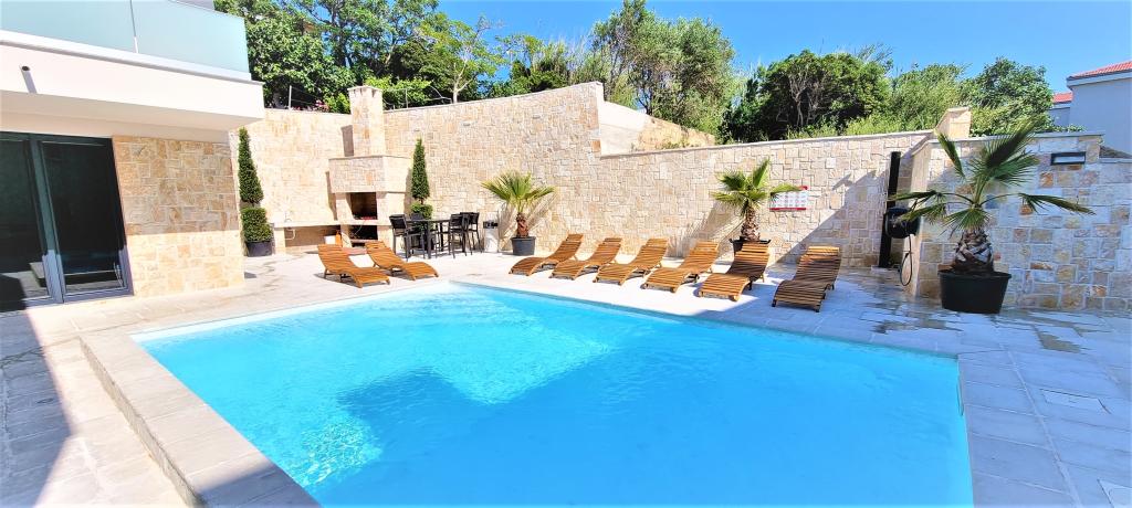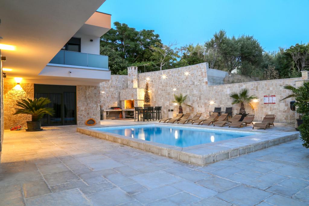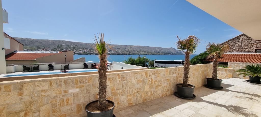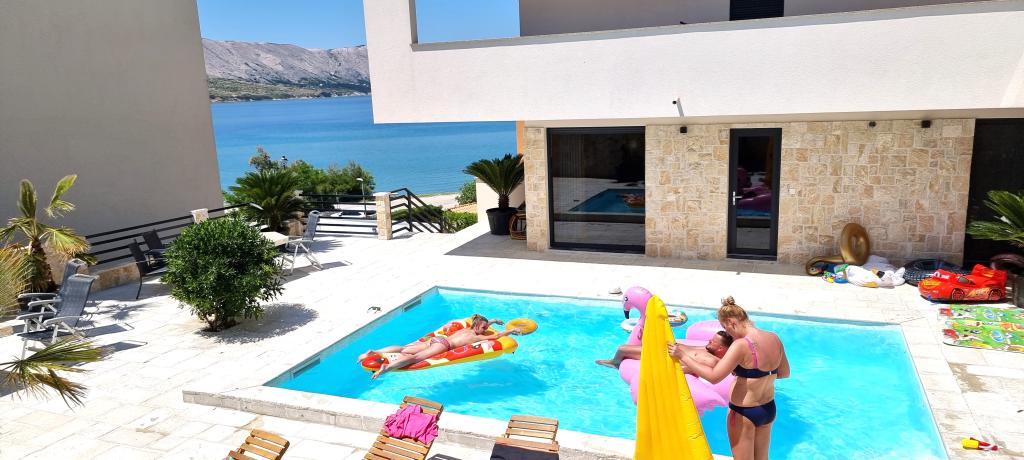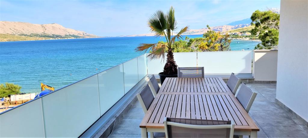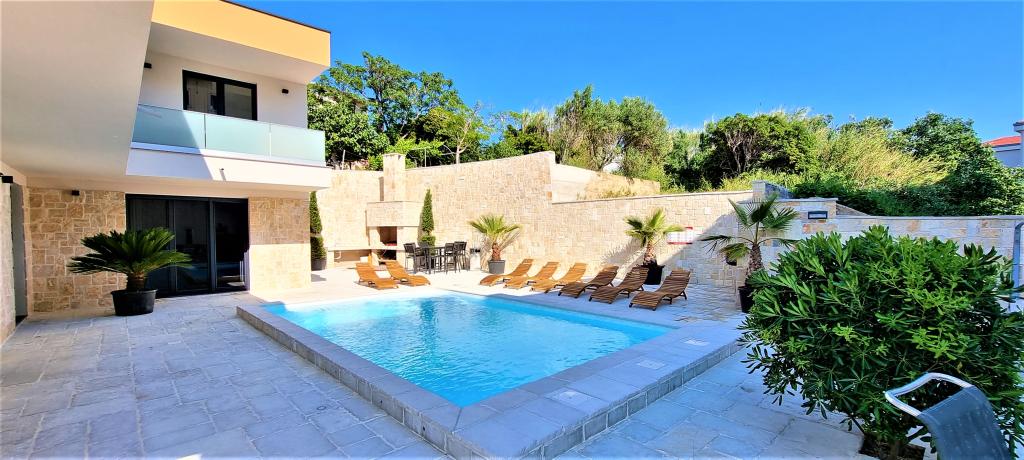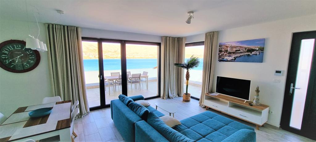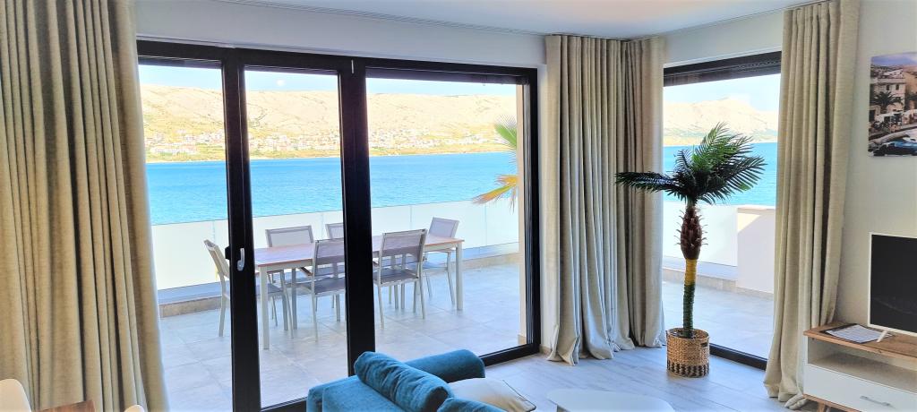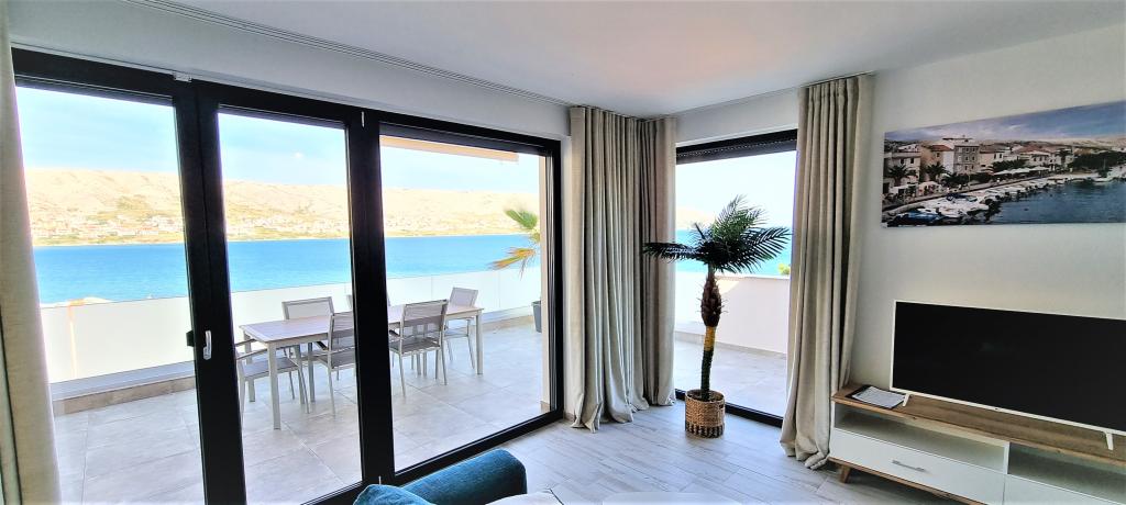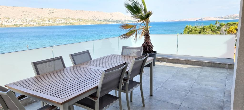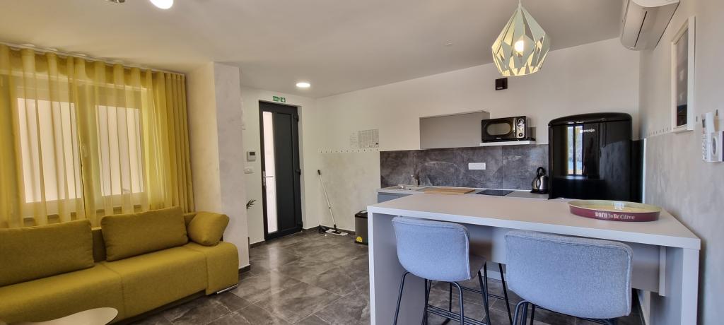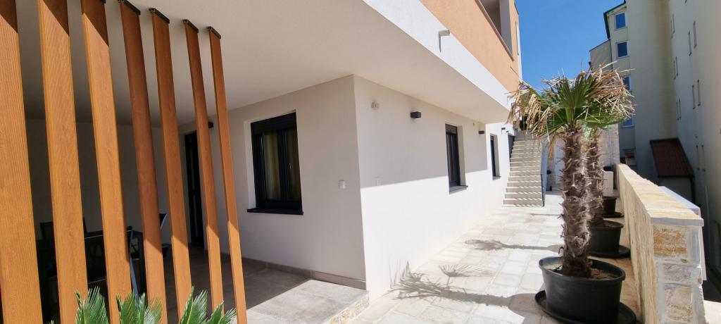 Moderní apartmánová vila v první řadě k moři, 400m od centra města, procházka podél moře.
