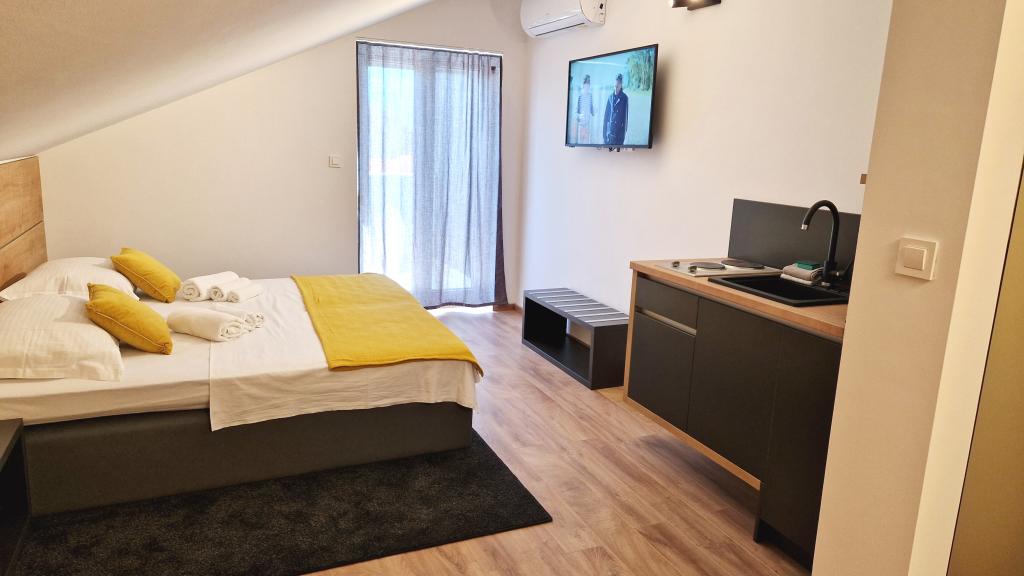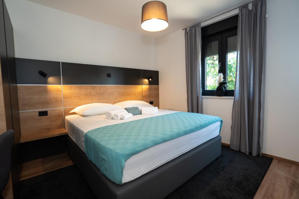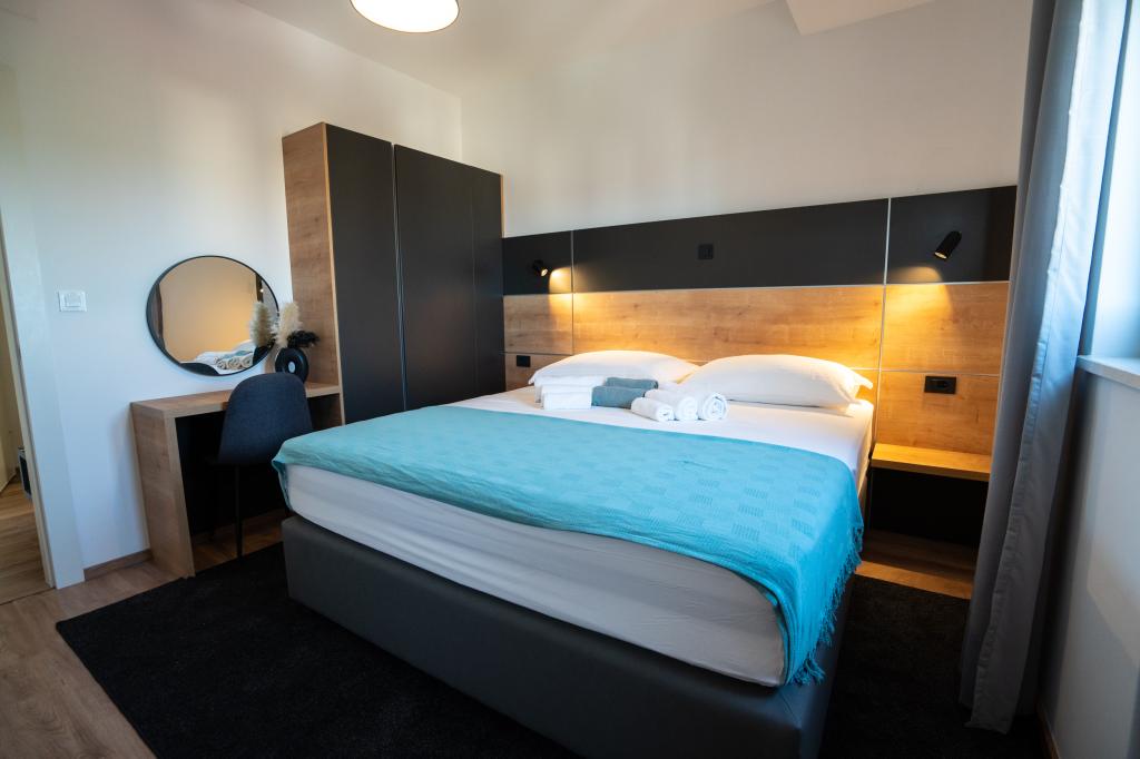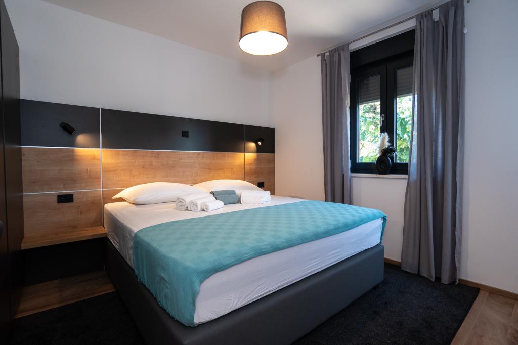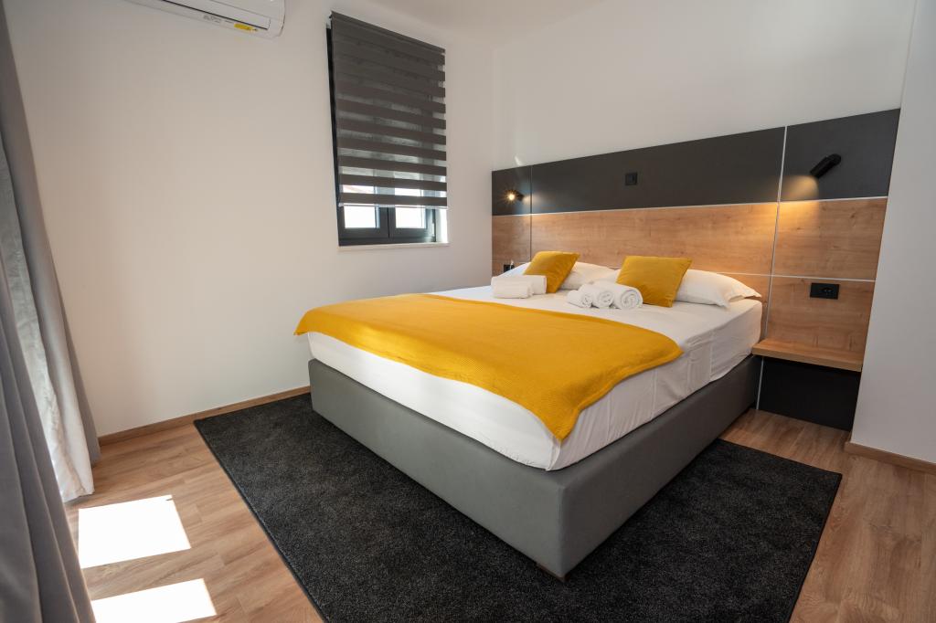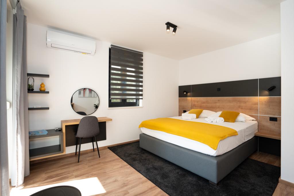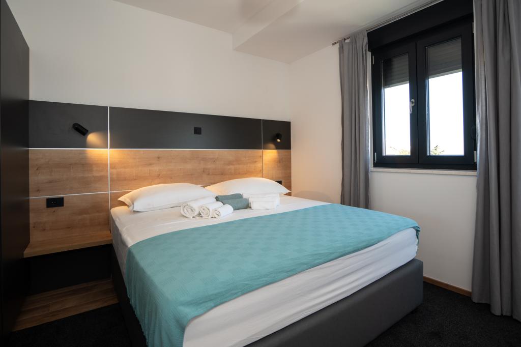 Užijte si pohodlí a eleganci našich moderně vybavených pokojů a luxusních apartmánů. Všechny ubytovací kapacity jsou kategorizovány jako 4 hvězdičky a vybaveny dle hotelových standardů pečlivě vybraným nábytkem a kvalitním vybavením. Ideální pro služební cesty, rodinné dovolené nebo letní relaxaci - váš dokonalý pobyt v Novalji začíná zde! I 4 hvězdičky - potvrzení kvality I Moderní vybavení a design I Apartmány s jednou ložnicí I Dvě přistýlky v prostorném obývacím pokoji I Bezplatné Wi-Fi I Soukromé parkování Rezervujte si nyní a zažijte maximální pohodlí! POZNÁMKA: Přistýlky v obývacím pokoji mohou využívat pouze děti do 12 let.