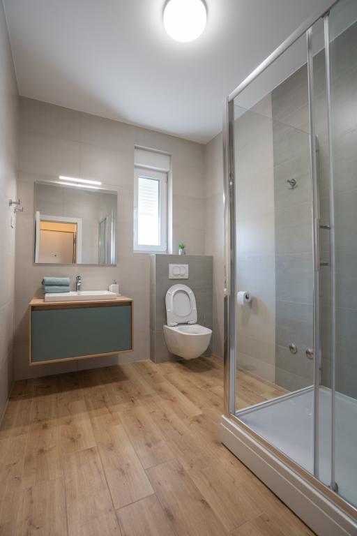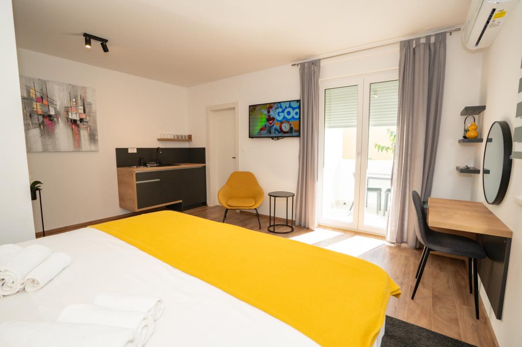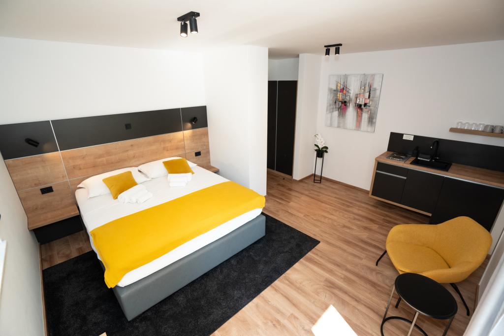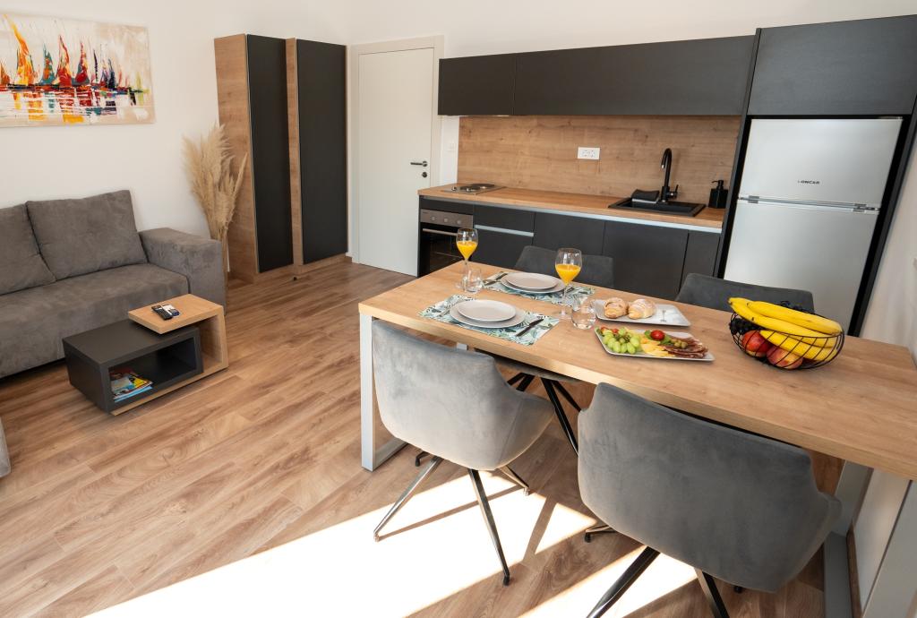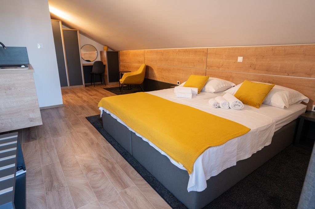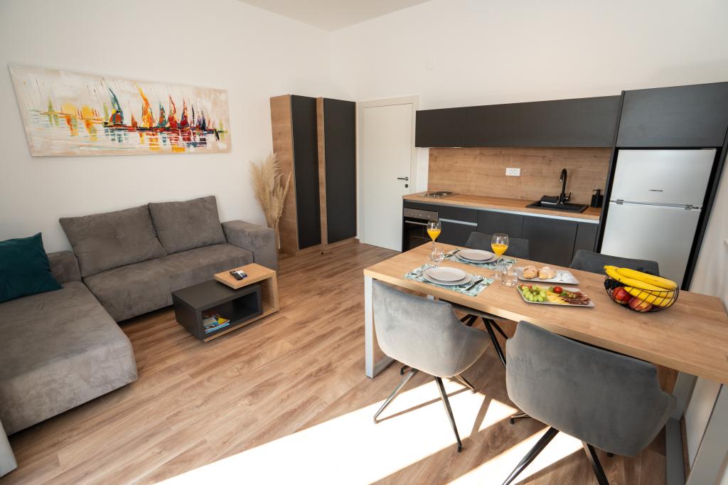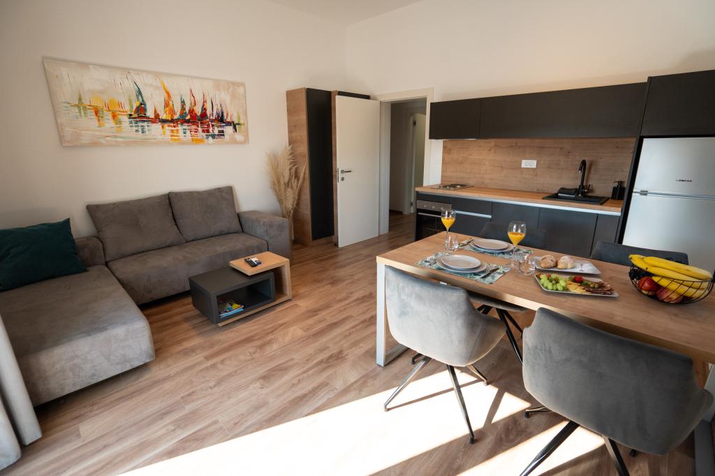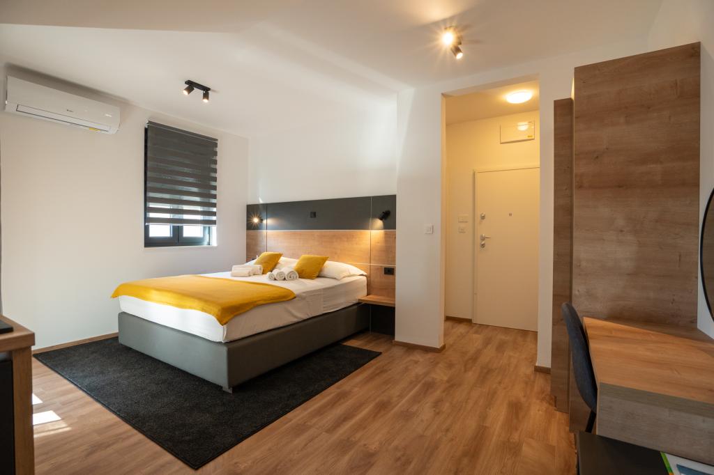 Užijte si pohodlí a eleganci našich moderně vybavených pokojů a luxusních apartmánů. Všechny ubytovací kapacity jsou kategorizovány jako 4 hvězdičky a vybaveny dle hotelových standardů pečlivě vybraným nábytkem a kvalitním vybavením. Ideální pro služební cesty, rodinné dovolené nebo letní relaxaci - váš dokonalý pobyt v Novalji začíná zde! I 4 hvězdičky - potvrzení kvality I Moderní vybavení a design I Apartmány s jednou ložnicí I Dvě přistýlky v prostorném obývacím pokoji I Bezplatné Wi-Fi I Soukromé parkování Rezervujte si nyní a zažijte maximální pohodlí! POZNÁMKA: Přistýlky v obývacím pokoji mohou využívat pouze děti do 12 let.