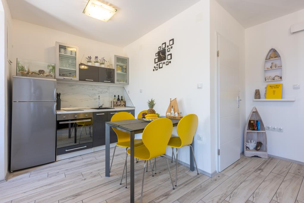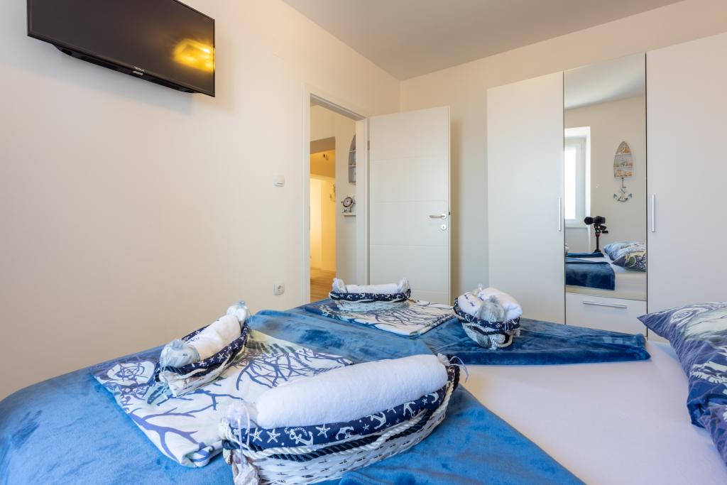 Krásné nově zařízené v mořském stylu, i když má stejnou klimatizaci není nutné, protože byt je velmi pohodlný a volný, nachází se v přízemí, doporučení ...
