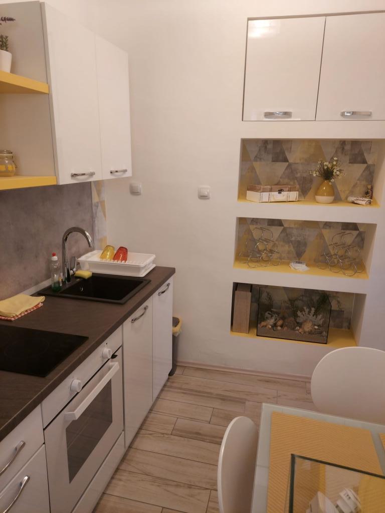 Pan Mario velmi laskavý a vstřícný, ačkoli jsme byli pozdě o více než 8 hodin (dorazili k 1 po půlnoci), pan Mario nás pozdravil studenou šťávou a širokým úsměvem, děkuji znovu. Byt je nově zařízený, obsahuje vše, ideální pro rodinu se dvěma dětmi. Ve středu a velmi blízko k moři je jediná věc, když jdete do kopce z moře.