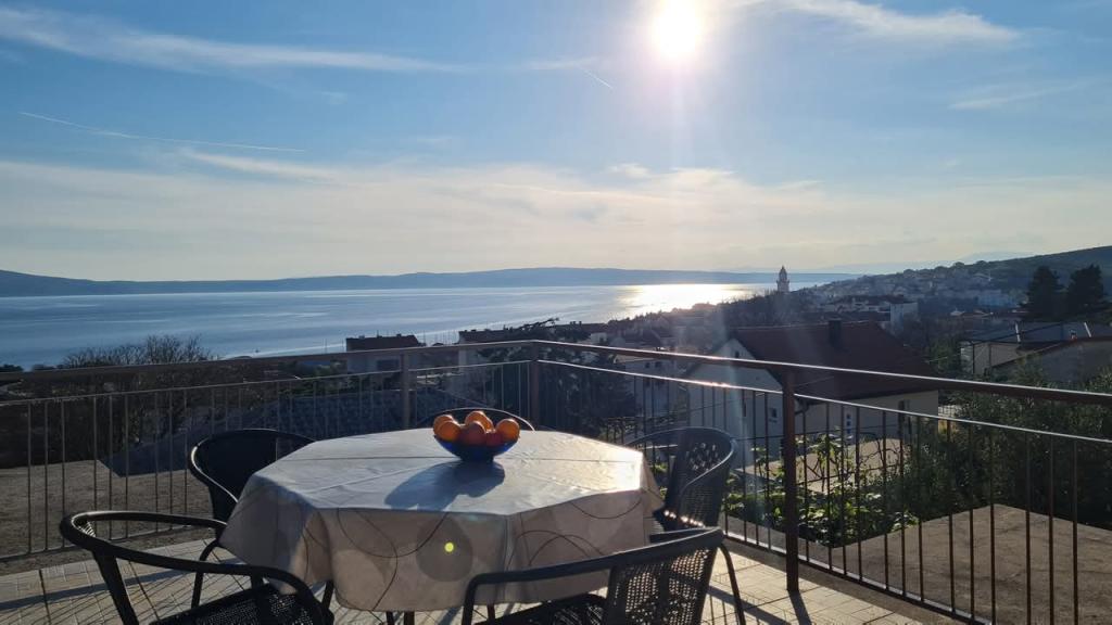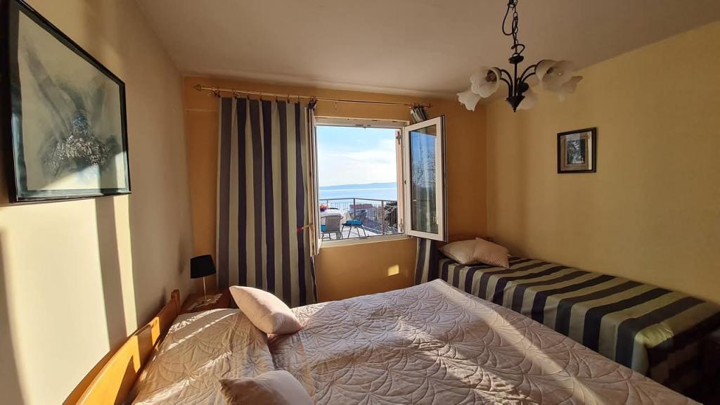Vybavený apartmán se dvěma velkými ložnicemi, kuchyní, obývacím pokojem, koupelnou a krásnou velkou terasou s výhledem na moře a centrum města. Vybaveno všemi domácími spotřebiči (pračka, myčka, mikrovlnná trouba, toustovač, trouba, varná konvice, elektrický gril). Parkování, klimatizace a WiFi jsou v ceně. Byt se nachází 5 minut od centra města a 10 minut od hlavní pláže.