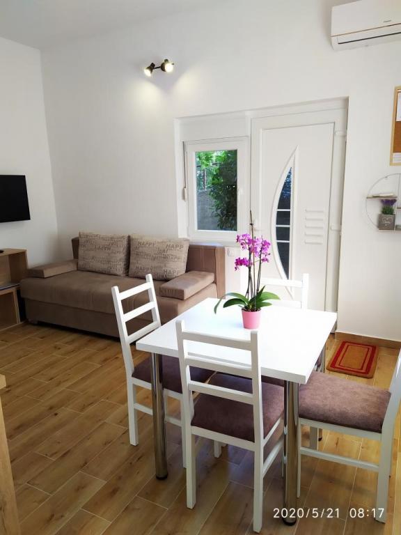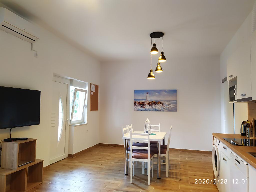 Zařízení se nachází v klidné části města, jen pár minut chůze od centra a deset minut chůze od pláže. V budově jsou dva dvoulůžkové pokoje a dva apartmány. Pokoje jsou umístěny v prvním patře. Každý pokoj má vlastní koupelnu uvnitř pokoje a balkon. Pokoje jsou vybaveny manželskou postelí a klimatizací. Hosté, kteří se rozhodnou rezervovat pokoj, mají možnost využít letní kuchyňku, která je vybavena plynovým sporákem, ledničkami, varnou konvicí a nezbytným černobílým nádobím. Wi-fi, klimatizace, parkování a používání letní kuchyně jsou zahrnuty v ceně. Za použití pračky se účtuje 40,00 HRK za praní. Apartmány byly postaveny a vyzdobeny v roce 2020. Každý apartmán má parkoviště, terasu, klimatizaci, televizi s Evo TV, wi-fi, vysoušeč vlasů, žehličku, žehlicí prkno, kuchyň vybavenou elektrickým sporákem, digestoří, mikrovlnnou troubou, rychlovarnou konvicí, lednicí, myčkou, pračkou a černou a bílé nádobí.