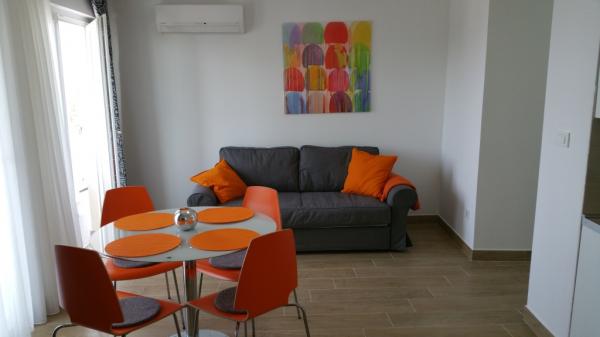 Nově zrekonstruované a moderně vybavené apartmány umístěné podél silnice v blízkosti moře a sto metrů od centra. Apartmány mají balkony s výhledem na moře. Apartmány mají Wi-Fi, TV s plochou obrazovkou, satelitní TV, invertorovou klimatizaci. Vzdálenost od pláže je 100 m a liší se od písečné, skalnaté, oblázkové a betonové.
