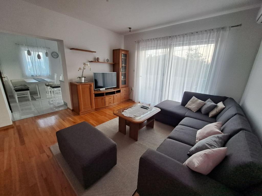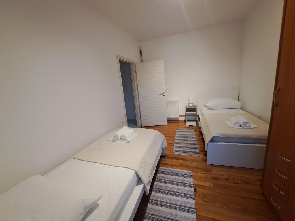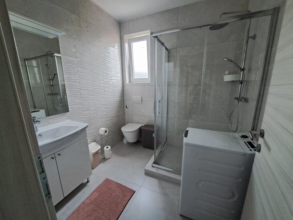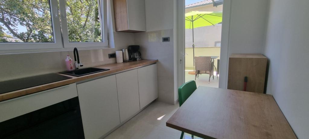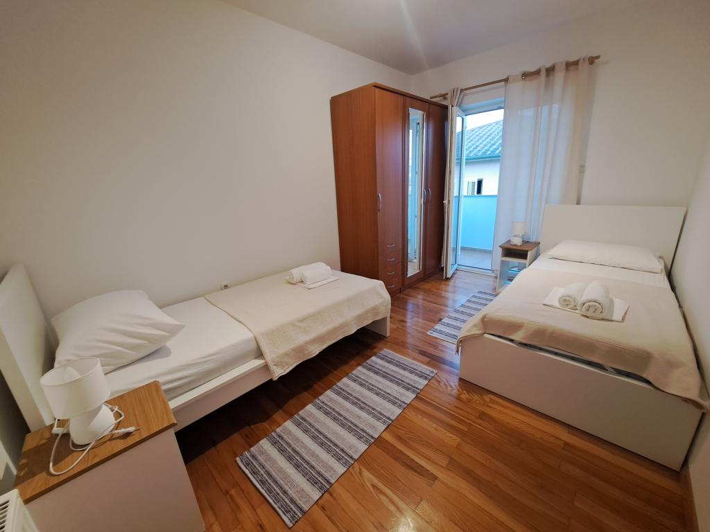 Byt se nachází v klidné části města, 5-10 minut chůze od pláže. Dvě ložnice, dvě koupelny, velký obývací pokoj, kuchyň a terasa z něj dělají ideální místo pro rodinnou dovolenou! Parkování přímo před apartmánem!