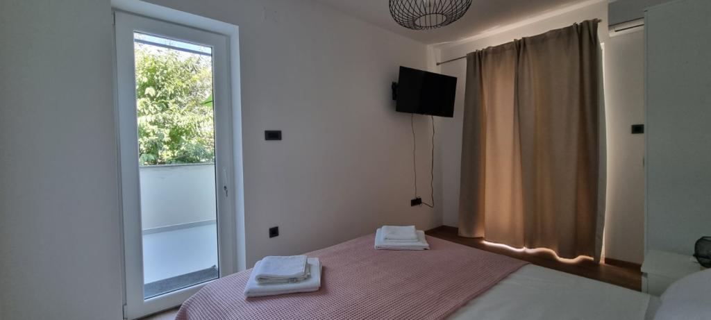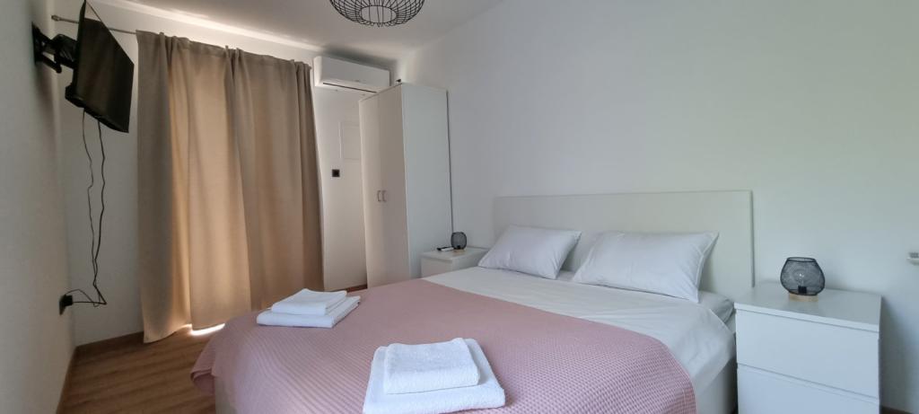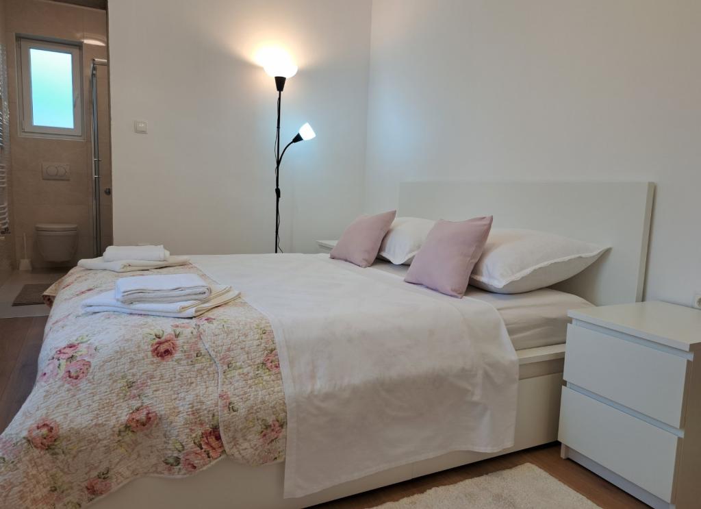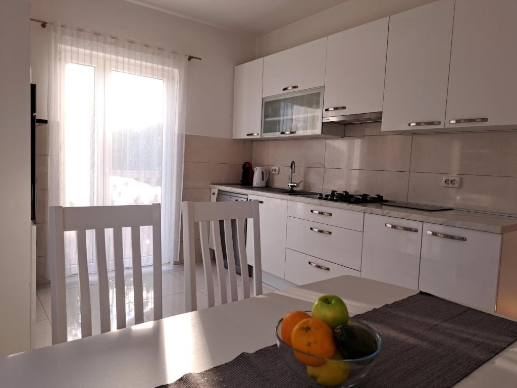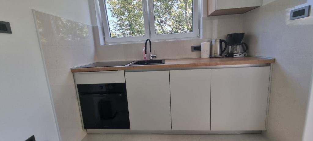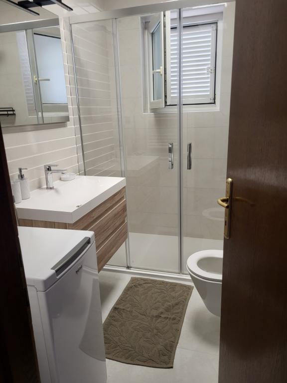 Byt se nachází v klidné části města, 5-10 minut chůze od pláže. Dvě ložnice, dvě koupelny, velký obývací pokoj, kuchyň a terasa z něj dělají ideální místo pro rodinnou dovolenou! Parkování přímo před apartmánem!