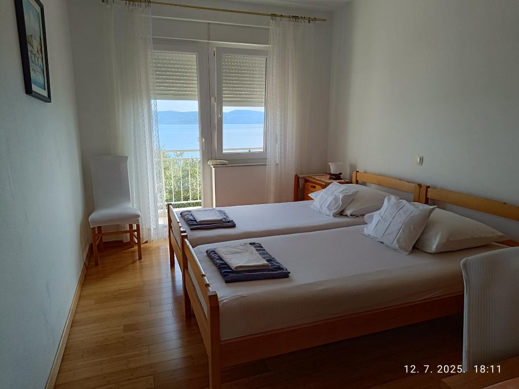 Fantastický byt, 2 velké ložnice a obývací pokoj s kuchyní. Vše čisté a voňavé. Krásný výhled z balkonů na Kvarnerský záliv a ostrov Krk. V bytě je vše potřebné, dobře vybavená kuchyň, koupelna se sprchovým koutem. Velmi milí majitelé, užitečné! Pěkný dárek pro hosty do lednice. Byty se samostatnými vchody nezasahují do soukromé zóny majitelů. Parkování u vchodu. Velmi blízko k vodě. Jsme velmi potěšeni! Zdravím paní Katarinu! ADJ