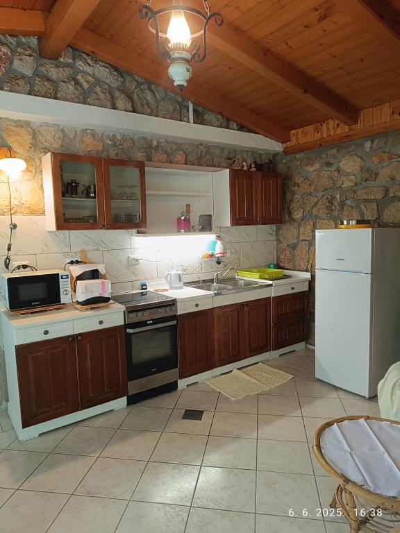 Dva větší apartmány se dvěma ložnicemi (60 m2) se nacházejí ve 2. patře domu s krásným výhledem na moře a menší apartmán s jednou ložnicí (45 m2) se nachází v samostatném kamenném (rustikálním) domě vedle hlavního domu, se kterým sdílí zahradu a dvůr. K dispozici je bezplatné parkování. Gril s terasou na zahradě je společný pro všechny hosty. Vzdálenost od moře je cca 250 m z kopce, kde se nachází promenáda s restauracemi a různými typy pláží. Vzdálenost do centra je cca 1,5 km, po promenádě podél moře.