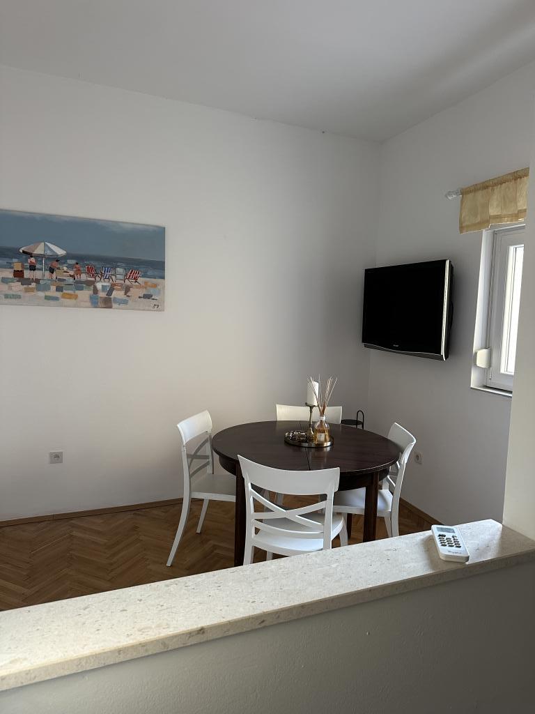 Vítejte v apartmánu „Barka“ – okouzlujícím koutku s výhledem na moře. V samém srdci Novigradu, jen pár kroků od moře, se nachází apartmán „Barka“ – prostorný, pohodlný a naplněný teplem středomořského stylu. S rozlohou 50 m² je apartmán ideální až pro 3 dospělé osoby a je perfektní volbou pro páry nebo malé rodiny, které chtějí klidnou dovolenou daleko od turistických davů. Apartmán nabízí jednu samostatnou ložnici s velkou manželskou postelí (180x200) a další pohodlné jednolůžko (100x200) v obývacím pokoji. Všechny postele jsou nové a nejsou přistýlky, což zaručuje kvalitní spánek a pohodlí. Zvláštním kouzlem tohoto apartmánu je terasa – částečně krytá, se soukromou atmosférou a krásným výhledem na moře. Ideální místo pro ranní kávu nebo večerní relaxaci.