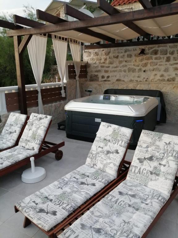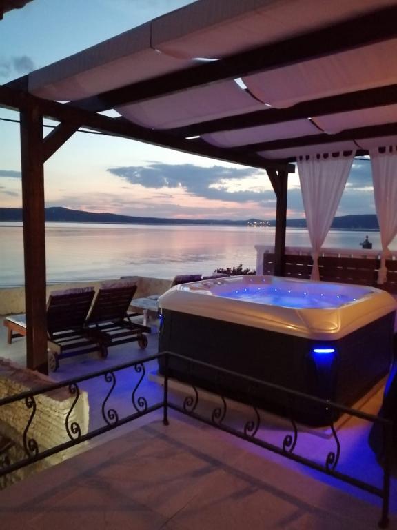 Nabízíme dva plně vybavené apartmány s krásnou zahradou. Terasy nabízejí gril a kvalitní venkovní nábytek. Větší apartmán v prvním patře má jacuzzi na velké terase, výhradně pro použití hostů velkého apartmánu. Zařízení se nachází v bezprostřední blízkosti pláže a terasa nabízí nádherný výhled na moře Velebit. Do centra Novigradu vzdáleného 500 m se dostanete klidnou procházkou podél moře. V Novigradu je k dispozici bezplatné parkoviště. Město Zadar je vzdálené 30 km a v okolí, ve vzdálenosti 20 až 120 km, se nacházejí 4 národní parky / Paklenica, Vodopády Krka, Národní park Kornati a Plitvická jezera. Letiště je 15 km od apartmánu.