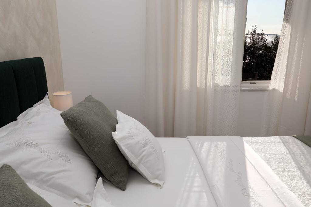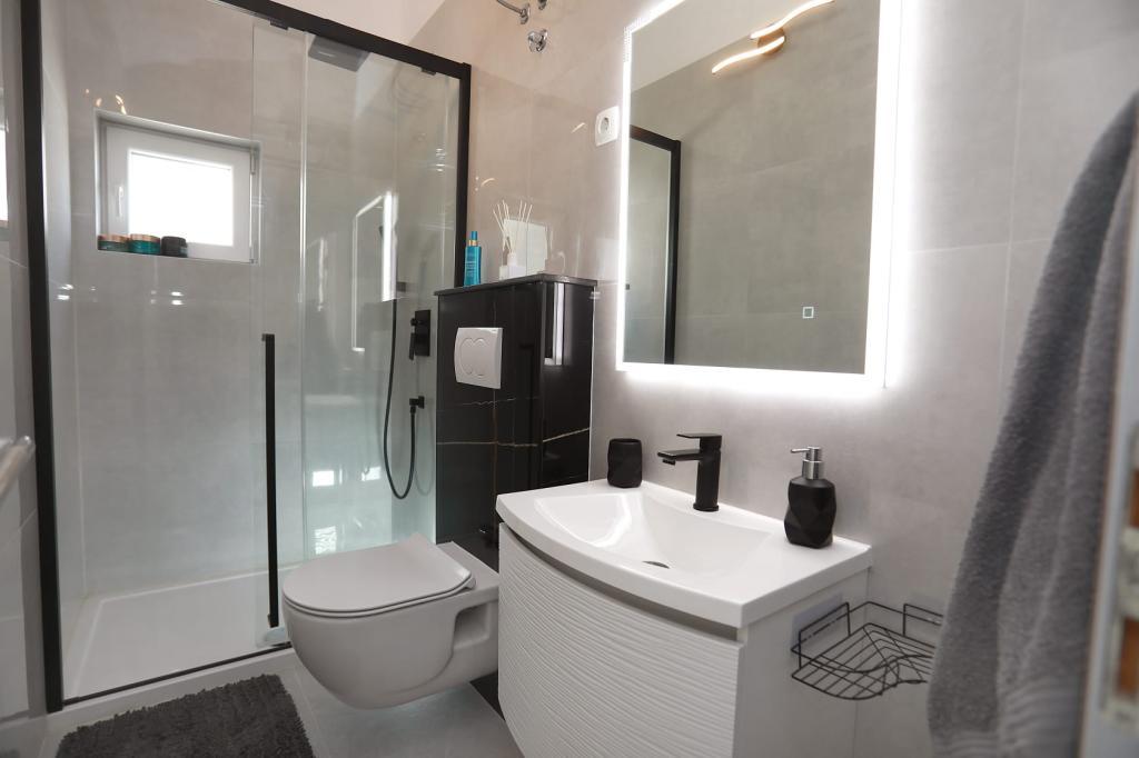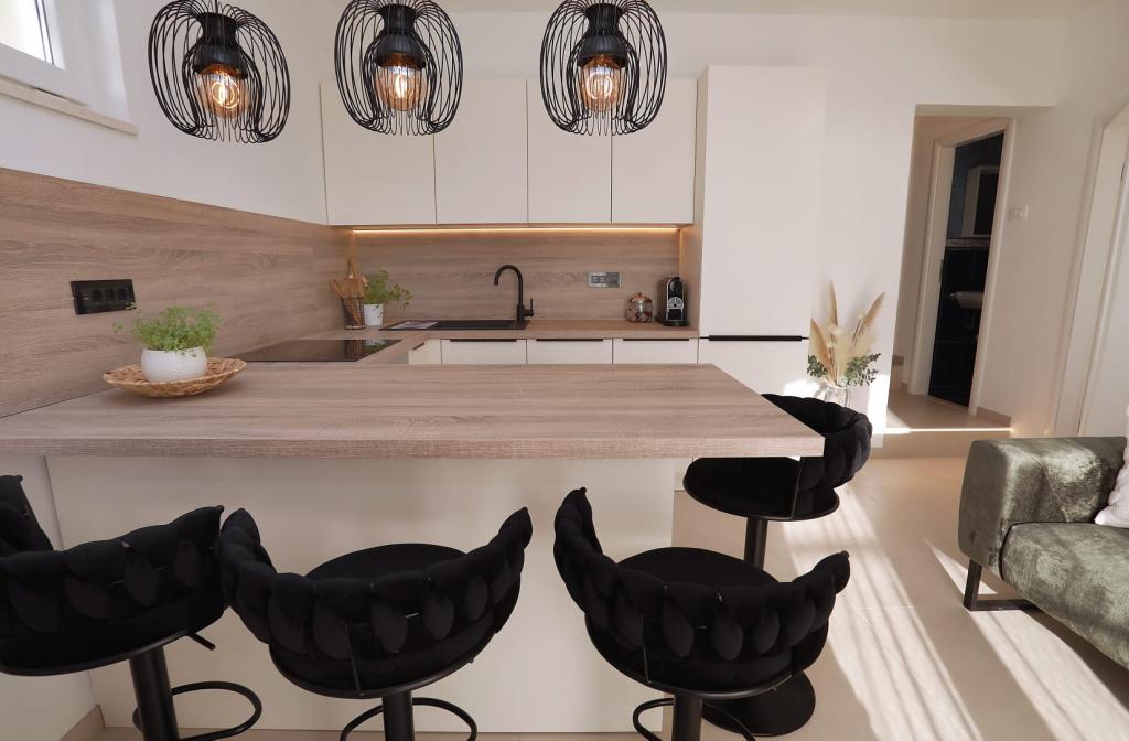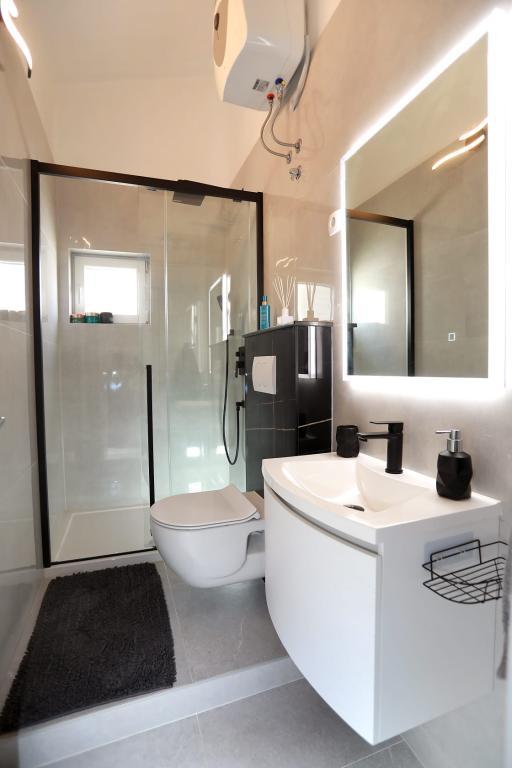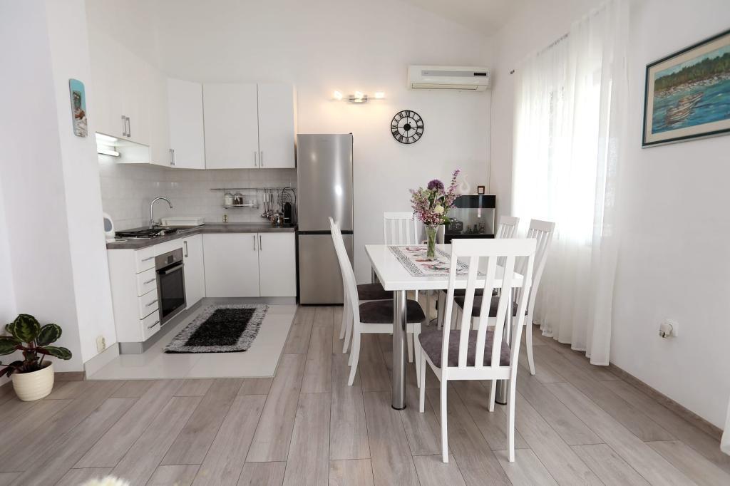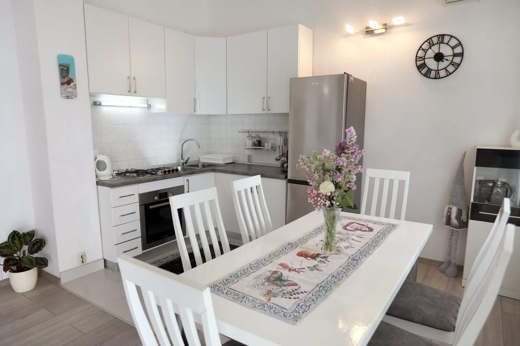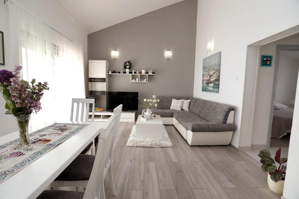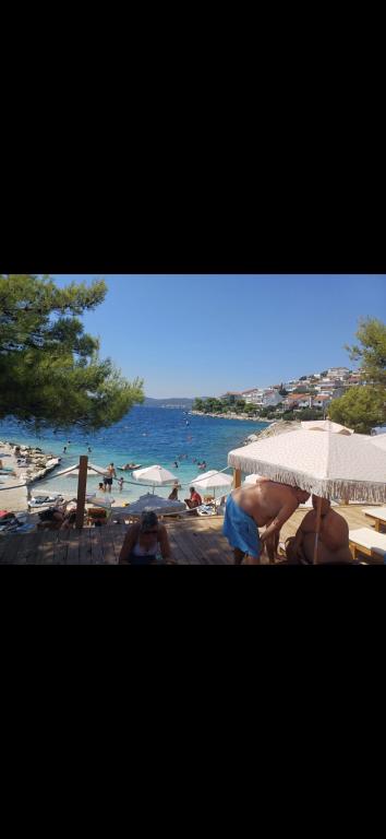 Apartmán Katija se nachází v Okrug Gornji, pouhých 30 m od pobřeží. Náš apartmán nabízí dokonalou kombinaci klidu, pohodlí a okouzlujícího výhledu na četné dalmatské ostrovy. Je to ideální destinace pro rodiny, páry a každého, kdo hledá odpočinek v přírodním prostředí, daleko od davů, a přesto blízko veškeré potřebné občanské vybavenosti. Vychutnejte si ranní kávu nebo večerní západ slunce na vaší soukromé terase, kde na vás čeká úchvatný výhled. Jen 5 minut chůze odtud se nachází dobře udržovaná pláž vhodná pro děti, s mělkou vodou a přirozeným stínem - ideální pro rodinnou dovolenou. Hlavní vlastnosti apartmánu: blízkost moře, terasa s krásným výhledem, plně vybavená kuchyň s jídelním koutem a obývacím pokojem, dvě ložnice s manželskými postelemi, koupelna se sprchou a základním vybavením, bezplatné Wi-Fi, klimatizace, TV, bezplatné parkování. Ať už plánujete aktivní dovolenou, nebo si chcete jen užít slunce a moře, náš apartmán v okrese Gornji nabízí vše, co potřebujete pro nezapomenutelný pobyt.