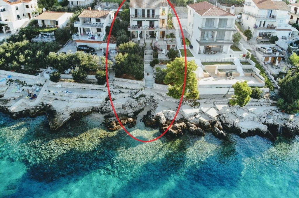 Rodinný dům se dvěma samostatnými byty, které lze pronajmout samostatně nebo společně. Apartmány se nacházejí na pláži (1. řada) a vnější schody vedou přímo na pláž. To je méně než 30 m od moře s velkými balkony s krásným výhledem na moře a ostrovy. Obchod, restaurace a kavárna jsou vzdálené 15 minut chůze, takže místo poskytuje naprosté soukromí a klid.