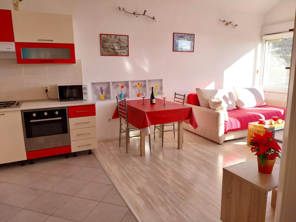 Dobře vybavený byt s výhledem na moře, řeky a hory. Nachází se v klidné části města, u ústí řeky Cetiny, 5 minut chůze od krásné písečné pláže a 10 do centra města. Obklopen zelení a nekonečné modré, tento byt je na vás čeká.