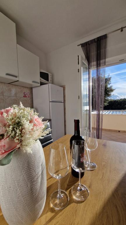 Všechno bylo skvělé, majitelé jsou velmi milí, apartmán je velmi čistý a kuchyň je velmi dobře vybavená, krásný výhled na moře.