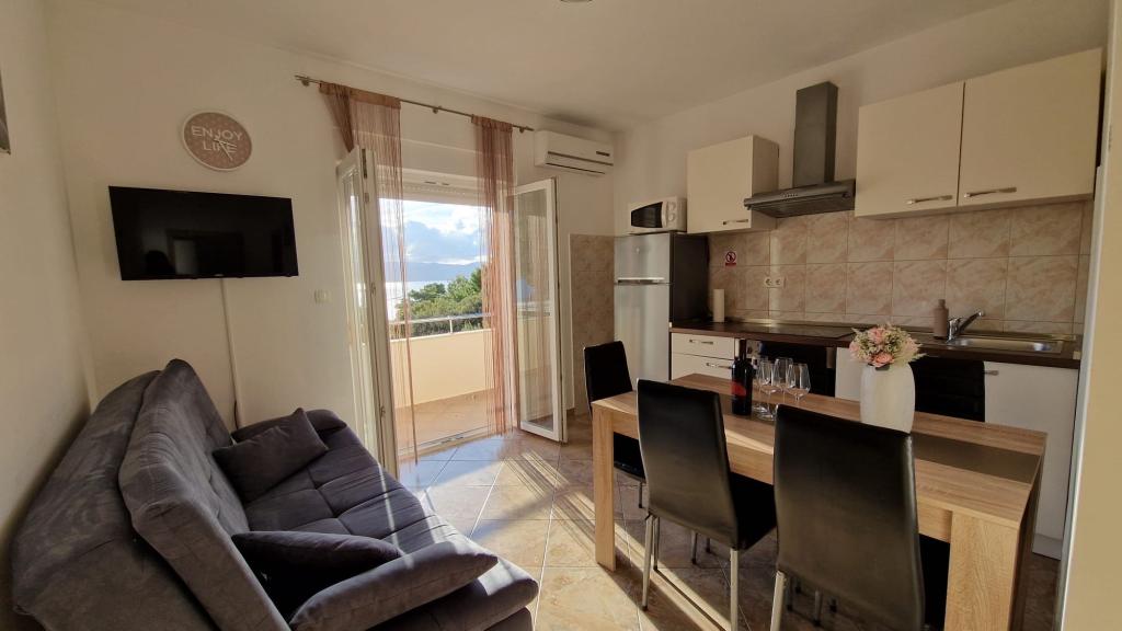 Apartmány MARTA se nacházejí na krásném místě Stanici 4 km od Omiše. Dostupné byty se nacházejí v přízemí a 1. patře rodinného domu. Majitel zařízení je vám během vašeho pobytu k dispozici. Apartmány mají výhled na moře a nedaleký ostrov Brač. Apartmány jsou ideálním místem pro rodiny s dětmi. Parkování je zajištěno ve dvoře. Všechny apartmány jsou klimatizované. V apartmánech nepřijímáme domácí mazlíčky. Pro ty, kteří chtějí aktivní dovolenou 4 km od Omiše, jsou nabízeny různé aktivity rafting, ziplining, horolezectví, výlety lodí na nedaleké ostrovy Hvar, Brač. Z budovy vede na pláž více než 100 schodů.