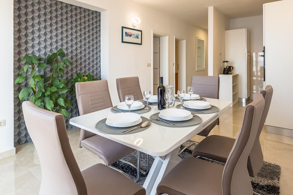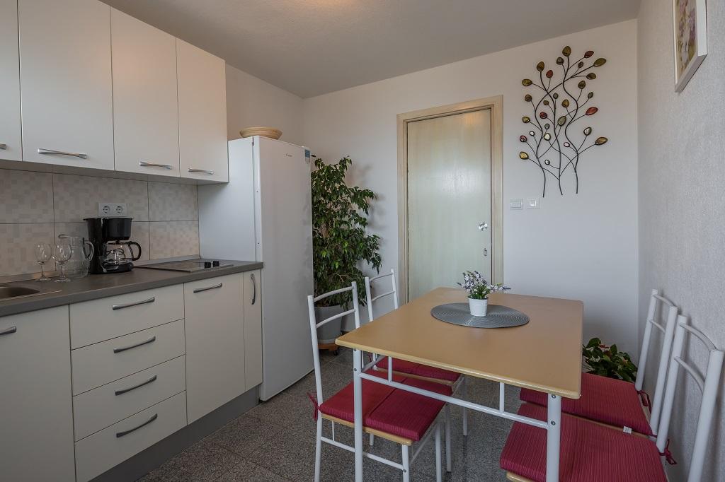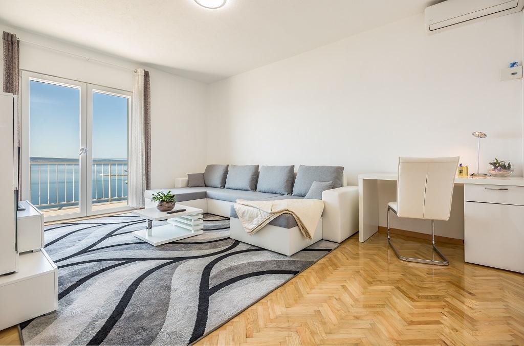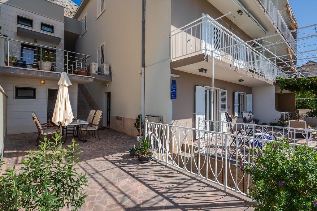 APARTMÁN SNJEZANA velký byt 90 m2. Jídelna se stolem pro 6 osob. Plně vybavená kuchyň. 2 ložnice a 1 obývací pokoj. V obývacím pokoji je rozkládací pohovka pro 2 osoby. K dispozici jsou přistýlky. V koupelně je sprchový kout, pračka a WC. Podnebí. Wi-Fi. SAT-TV. Balkon s výhledem na město, moře a ostrov Brač. Soukromé parkování je možné pro 1 auto. APARTMÁN DRINE Apartmán pro 4 osoby. 40 m2 byt má dvě ložnice. SAT-TV. Wi-Fi. Koupelna se sprchou a WC. Plně vybavená venkovní kuchyň. 2 soukromé terasy. Terasa 30 m2 s jídelním stolem a ochranou proti slunci, výhled na moře. Soukromé parkování. STUDIO TATJANA Velké studiové apartmá o velikosti 15 m2 Ložnice s manželskou postelí a samostatným lůžkem, mini lednicí a vlastní koupelnou se sprchou a WC. Wi-Fi. SAT-TV. Plně vybavená společná kuchyň. 30 m2 terasa se stolem a stínem, výhled na moře.