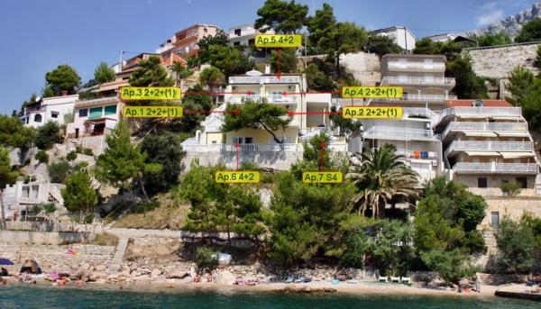 Dům se nachází v klidném městečku Stanići, přímo na pláži s krásným výhledem na moře, nově zrekonstruovaný a moderně zařízený. Všechny apartmány mají plně vybavenou kuchyň, satelitní TV a klimatizaci - topení, wi-fi. Parkování je zajištěno, kotviště pro loď za příplatek. domácí zvířata za příplatek. BYTY - 1,2,3 a 4 (2+2), jsou téměř stejné! apartmány mají cca 55 m2, každý apartmán má terasu s výhledem na moře, jeden pokoj, obývací pokoj s lůžkem pro dva, kuchyň, WC, klimatizaci, SAT TV, WI-FI. (za příplatek je možné umístit přistýlku pro 5 osob). BYT Č. 5 (4+2), nacházející se ve 3. patře, má cca 80 m2, 40 m2 terasu s výhledem na moře, 2 ložnice, 2 koupelny, kuchyň, obývací pokoj s postelí pro dva, klimatizaci, satelitní TV, Wi-Fi FI. (za příplatek je možné umístit přistýlku pro 7 osob).