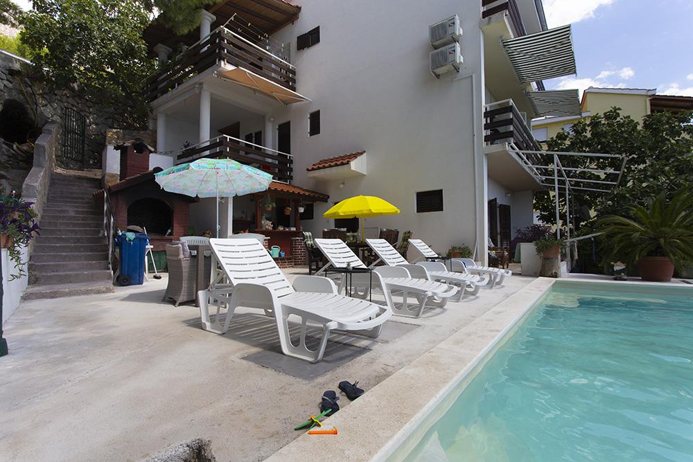 Apartmány Kapela se nacházejí v malém turistickém místě Ruskamen, nedaleko města Omiš. Dům se nachází v klidném prostředí, pouhých 40 metrů od oblázkové pláže, na kterou se dostanete po soukromých schodech. Na pláži mají hosté k dispozici lehátka a slunečníky, které mohou využívat zcela zdarma. Uvnitř objektu je dvůr s bazénem, lehátky a velkým grilem, který mohou hosté nerušeně využívat. Soukromé parkoviště pro vozidla hostů je v budově. Všechny apartmány mají klimatizaci, satelitní TV, kuchyň, koupelnu, Wi-Fi internet, gril na dřevěné uhlí a terasy s výhledem na moře. V bezprostřední blízkosti si můžete užívat krásné oblázkové pláže s přírodním stínem a křišťálově čisté moře. Centrum města se supermarketem, restauracemi, kavárnami a hotelovým komplexem je vzdáleno cca 400 metrů. Doporučujeme navštívit města: Omiš (5 km), Split (30 km), Makarska (30 km), Brela (18 km), Trogir (40 km).