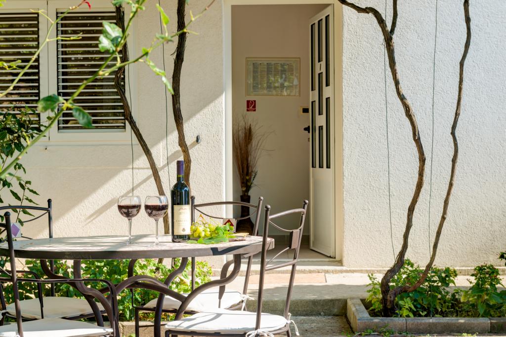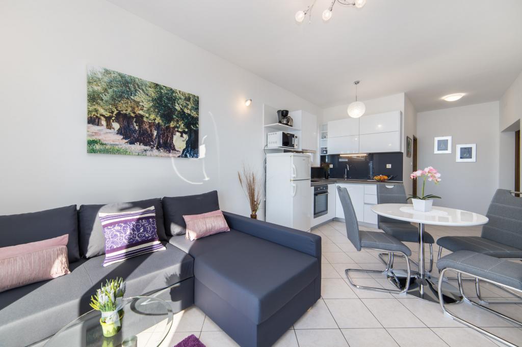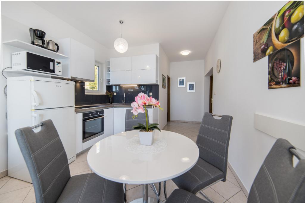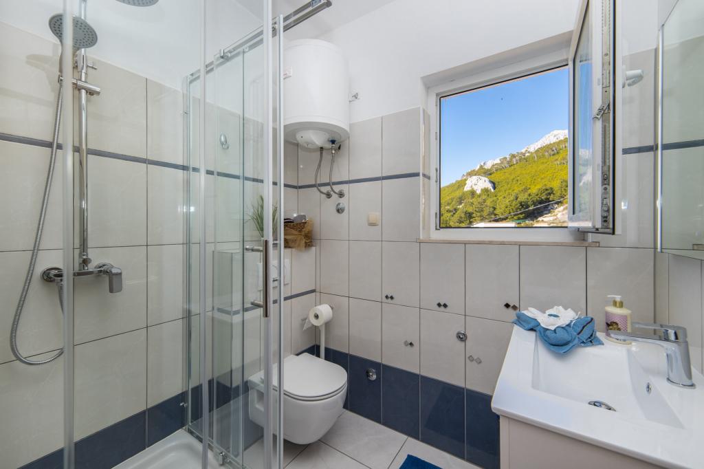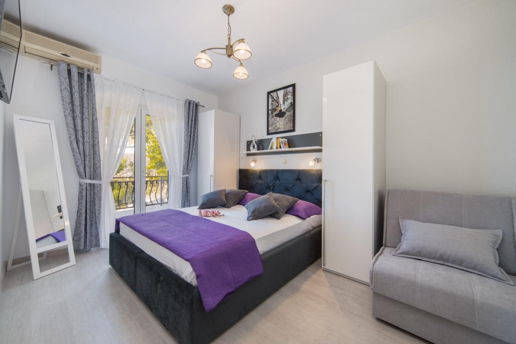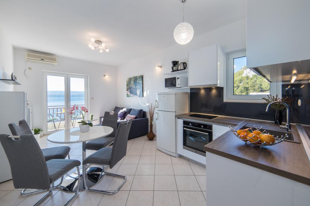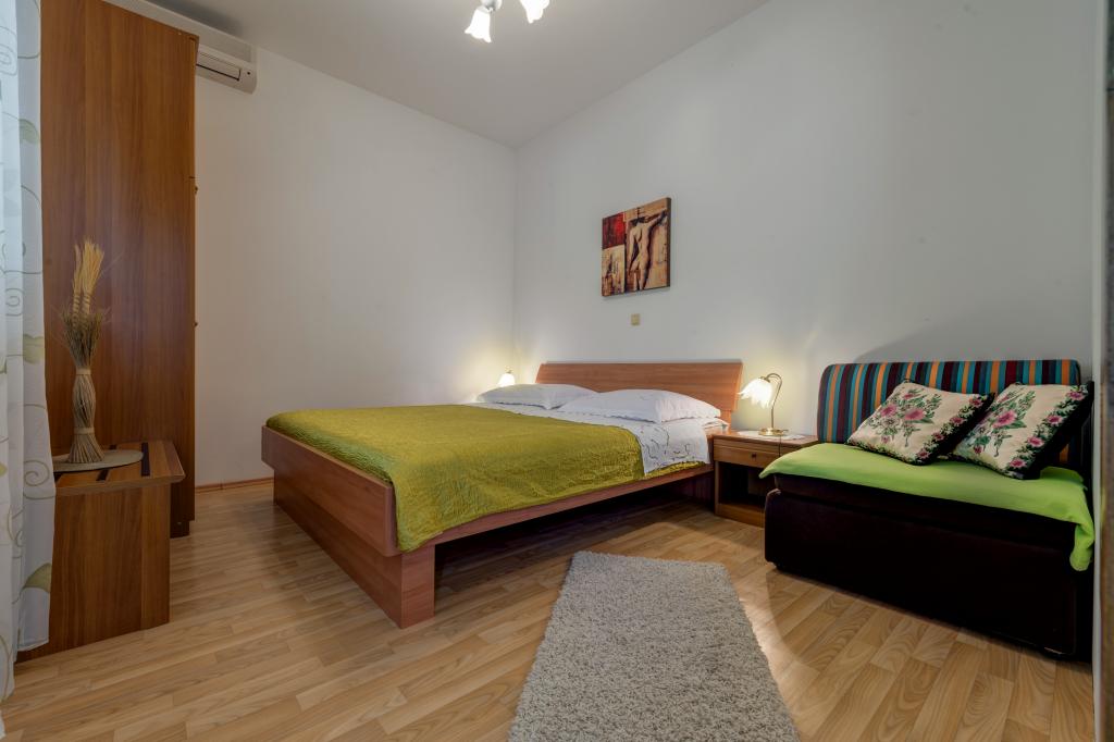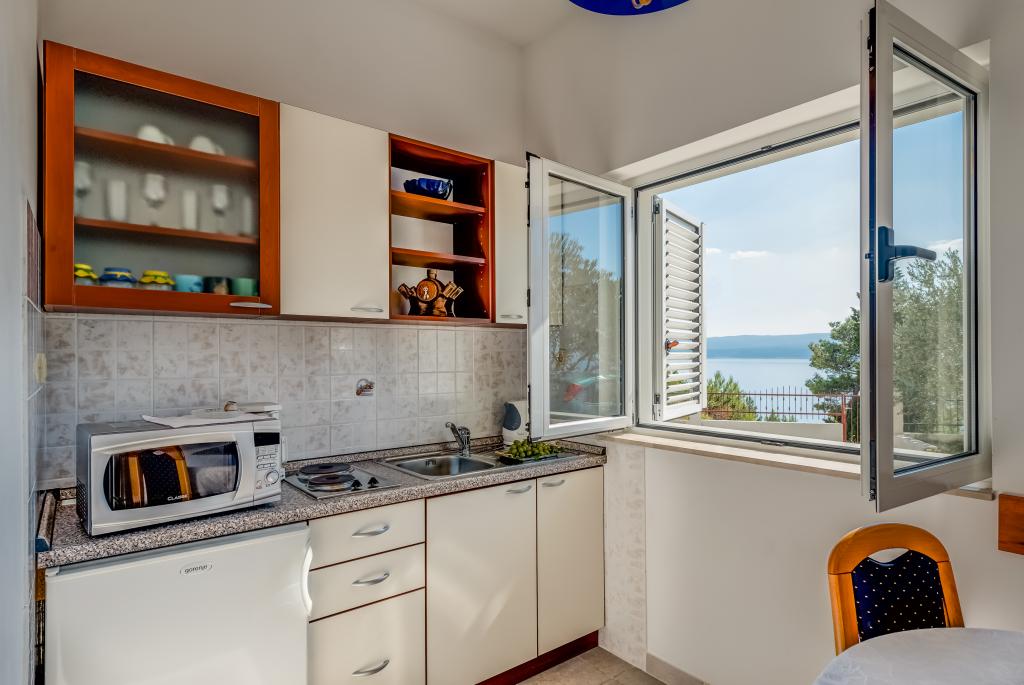 Apartmány Tafra se nacházejí v Lokva Rogoznica v srdci Dalmácie, jižně od Omiše, pouhých 9 km odsud. Stejným směrem vás cesta povede směrem na Makarskou nebo Dubrovník. Lokva Rogoznica je malebné malé místo ideální pro všechny, kteří chtějí skutečnou středomořskou atmosféru s čistým mořem a krásnými plážemi obklopenými borovicemi. Dovolená v apartmánech Tafra vám poskytne komfort, který vám umožní příjemný pobyt a naprostý klid. Apartmán A1 se skládá z ložnice pro 2 osoby a přístupu na balkon. V pokoji je i rozkládací křeslo, takže může být přistýlkou pro jedno dítě. Byt má koupelnu a kuchyň s obývacím pokojem s otevírací postelí pro 2 dospělé nebo dvě děti. Z obývacího pokoje je vstup na balkon.