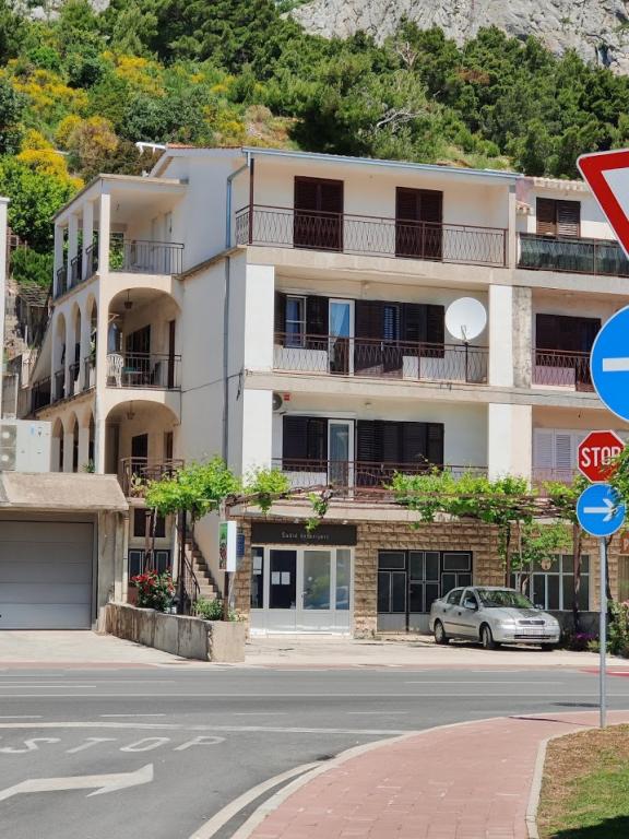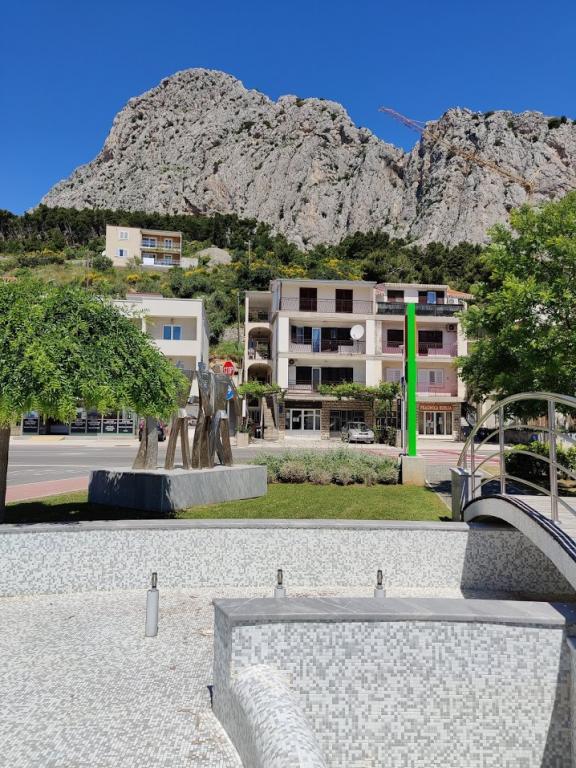 Dům se nachází u vchodu do Omiše od Splitu. Naproti domu se nachází v nákupním centru Studenac, autokemp Racek nabízí řadu sportovních a rekreačních zařízení, a Dino zábavní park a zábavní park pro malé i velké. Pláž je 200 metrů daleko a Omiš střediskem turistické 800m (10 minut chůze).