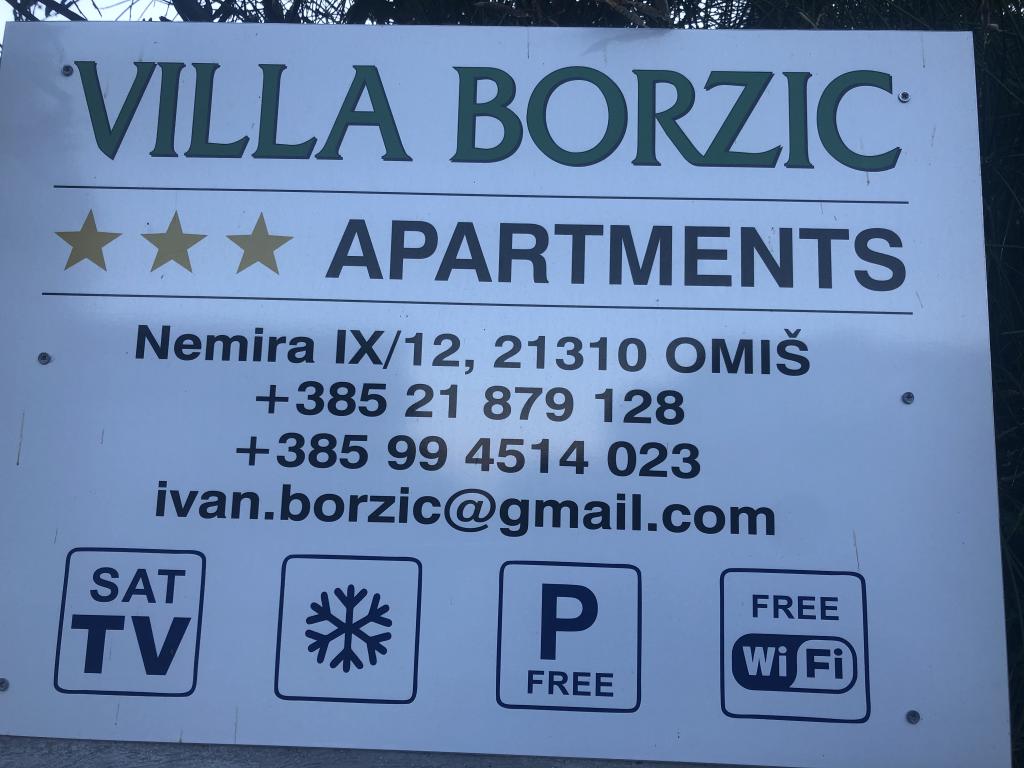 Vila Borzic nabízí při příjezdu do apartmánu láhev vína a 2 piva. Vila Borzic nabízí možnost výletů lodí Tornado na ostrovy, výlety lodí po řece Cetině, jízdu na kajaku, rafting a zipline. Pouze Vila Borzic má soukromý východ na hlavní autobusové nádraží do Splitu, Dubrovníku a Makarské. Všichni hosté mají možnost využívat venkovní gril s terasou a bezplatné parkování a bezplatné Wi-Fi připojení k internetu. V blízkosti objektu se nachází několik restaurací a 2 supermarkety. 2 bankomaty se nacházejí pouhých 100 m od Vily Borzic. Vila Borzic je ideální pro rodiny s dětmi. Vstup se psy, kočkami... není povolen.