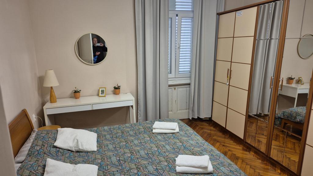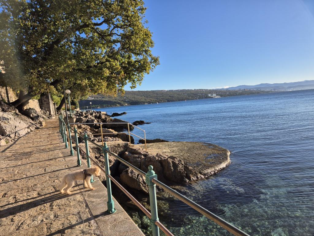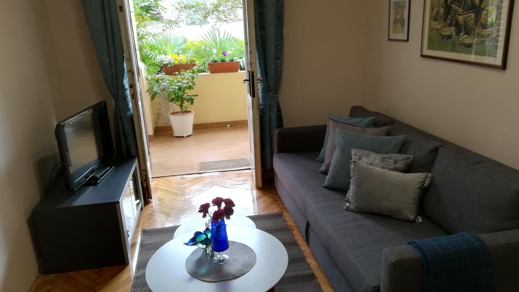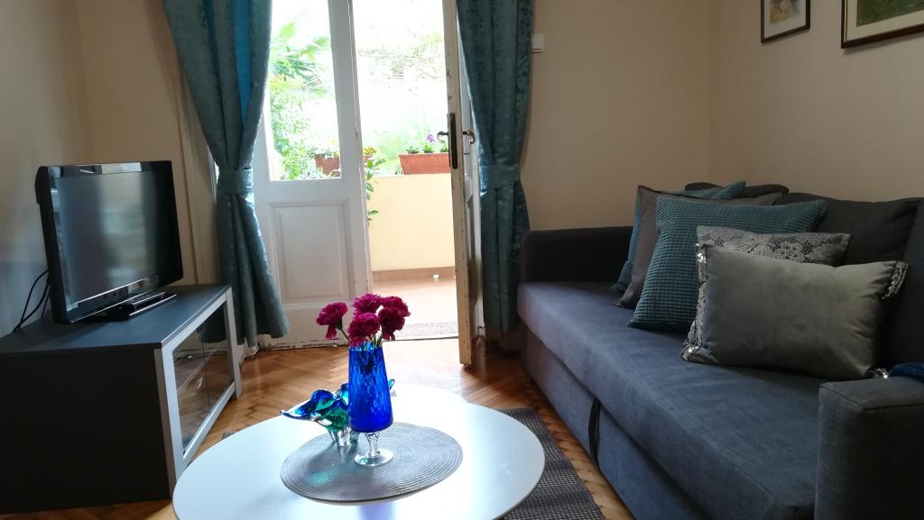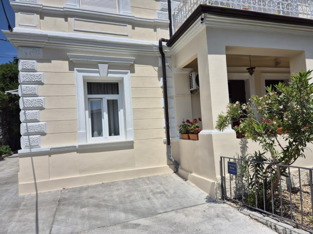 Okouzlující apartmán ve staré vile v centru Opatije. Apartmán se nachází 300 metrů od moře a pláže. Je velmi prostorný a jeho velikost je 58 metrů čtverečních. Má krytý balkon s výhledem na moře a na druhé straně domu je východ do zahrady, kde se také můžete ubytovat a je zde stůl a židle. Apartmán je jedním z mála v centru Opatije, který má bezplatné soukromé parkování. Opatijská tržnice je vzdálená 400 metrů a supermarket Spar je 150 metrů od apartmánu. Apartmán může ubytovat maximálně 5 osob. V ložnici je velká manželská postel a jedno samostatné lůžko. V obývacím pokoji je rozkládací pohovka. Kuchyně je prostorná a plně vybavená.