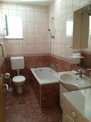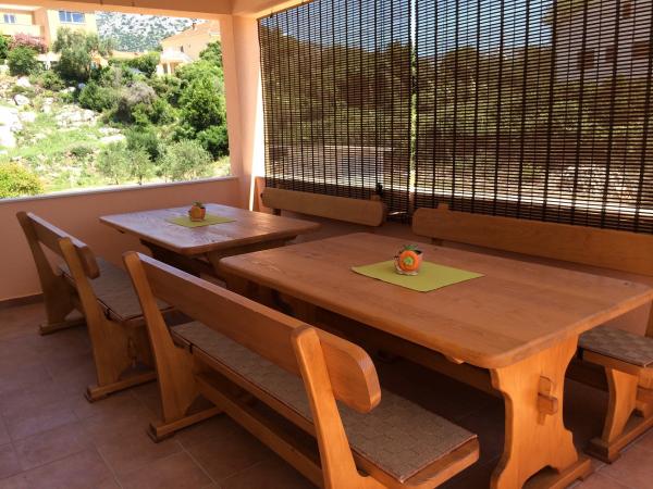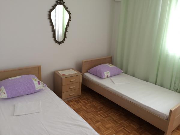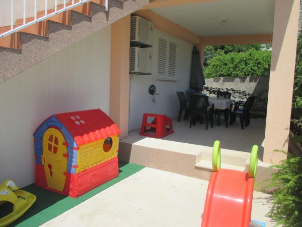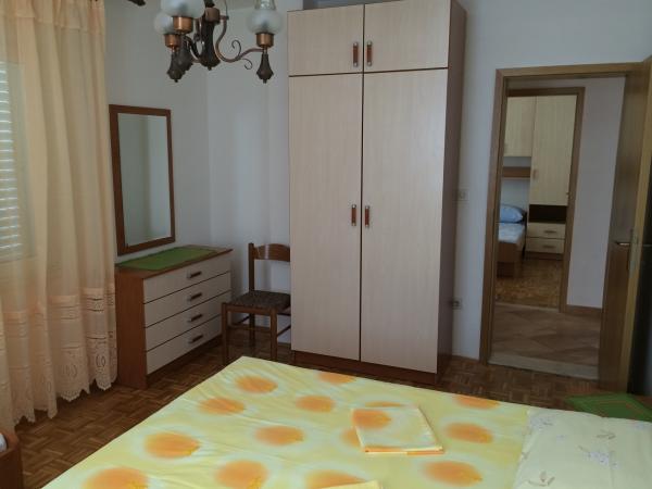 V rodinném domě je velký byt. Je plně vybaven. Má samostatný vchod a parkoviště. Dům se nachází dvě minuty chůze od pláže, moře, obchodu a banky. Apartmán (8+2) se nachází v prvním patře a skládá se ze čtyř ložnic (dvě třílůžkové a dvě dvoulůžkové), velké kuchyně, dvou koupelen s WC (jedna má pračku), velkého balkonu a velké terasy. Byt je vybaven klimatizací (velká klimatizace instalována na chodbě), Wi-Fi internetem, mikrovlnnou troubou, sporákem, troubou, myčkou, pračkou, velkou lednicí, veškerým potřebným nádobím a ložním prádlem. Ložní prádlo se mění jednou týdně. Daň, Wi-Fi, parkování a používání klimatizace jsou zahrnuty v ceně pronájmu.