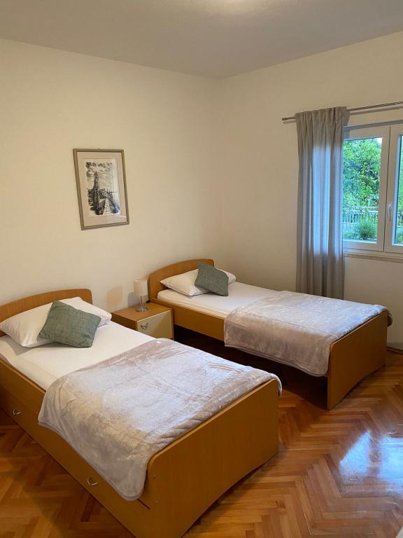 Pokud chcete strávit dovolenou v klidu malého přímořského městečka, přijďte nás navštívit. Náš dům se nachází v samém centru Orebiće, ale dostatečně daleko od hluku a dopravy, abyste mohli strávit svou dovolenou v klidu. Pro vaše auto je k dispozici stinné parkoviště ve dvoře domu. Pláž je 300 metrů od domu. Pokud se rozhodnete být našimi hosty, pokusíme se Vám pobyt co nejvíce zpříjemnit.