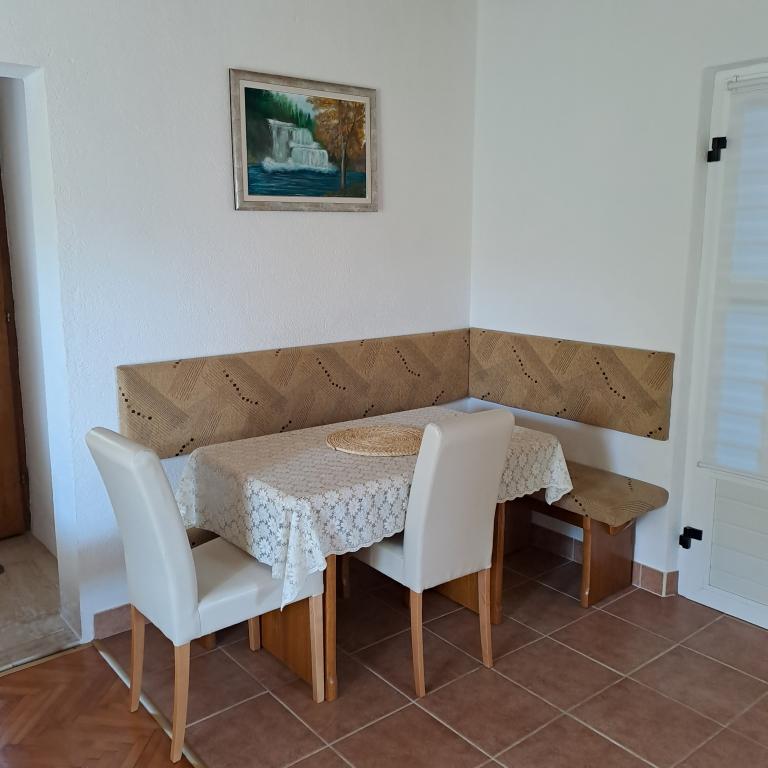 Velmi příjemní hostitelé. Velmi krásné výhledy. V blízkosti pláží a konoby. a kostel. Vzhledem k nízké poloze apartmánu nepotřebujete klimatizace. Velké, pohodlné parkoviště. Kuchyně je vybavena všemi potřebnými zařízeními. Koupelna má vše, co potřebujete, a ještě víc. Důrazně doporučuji.