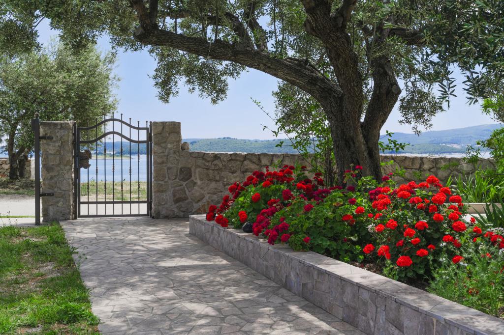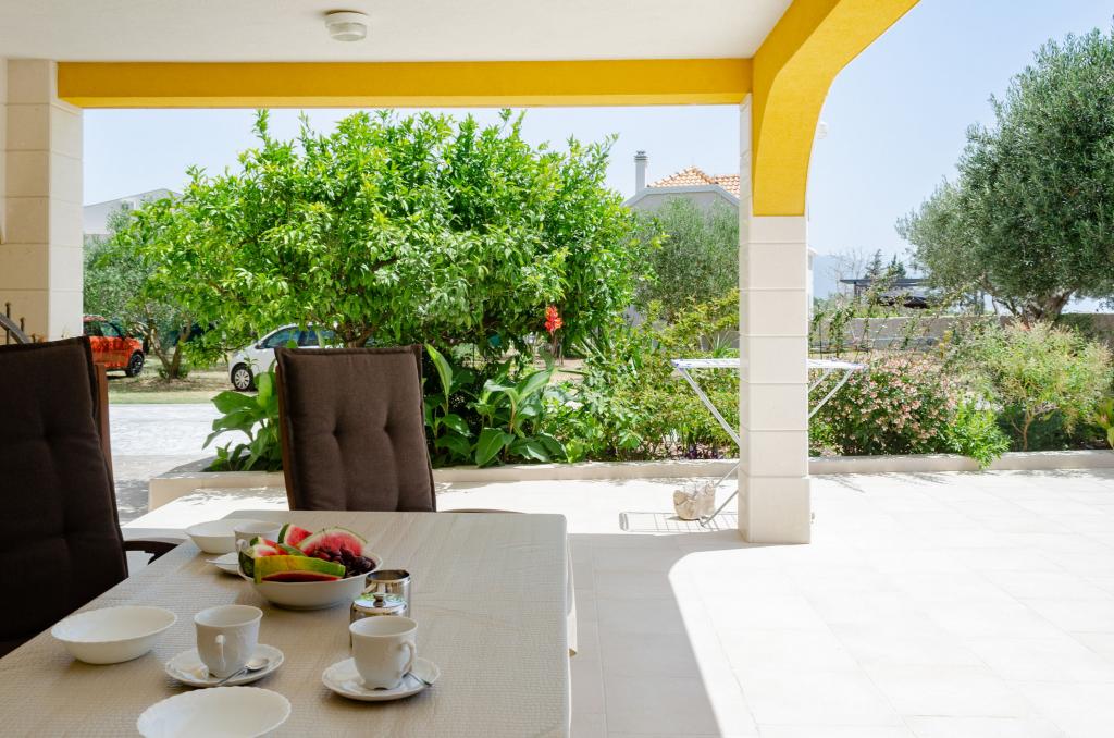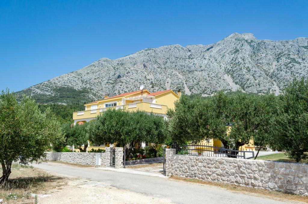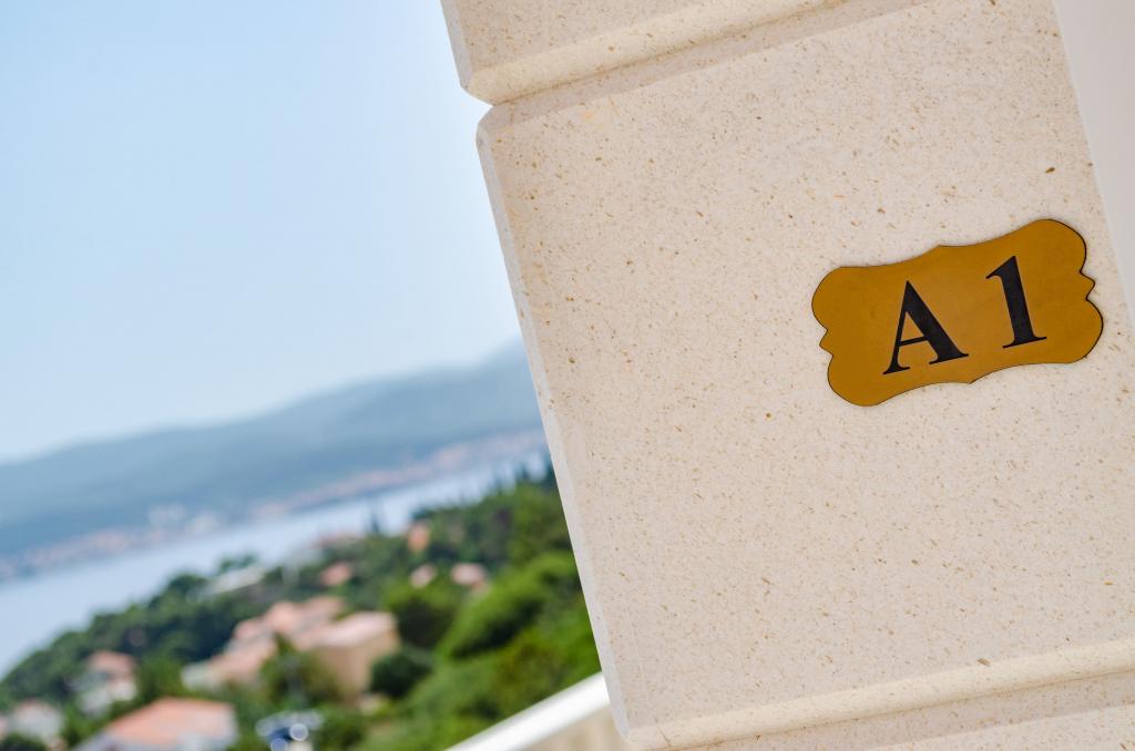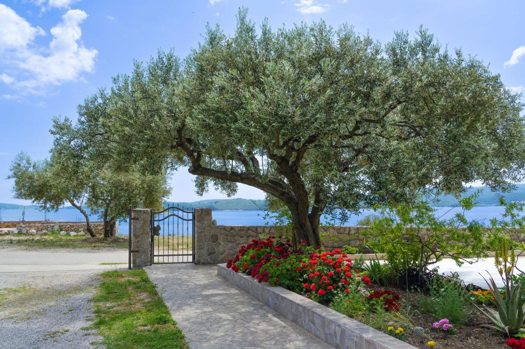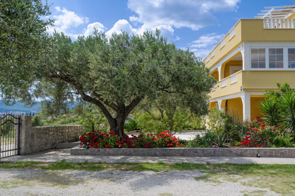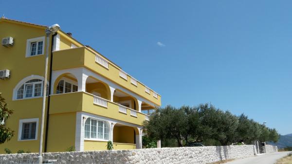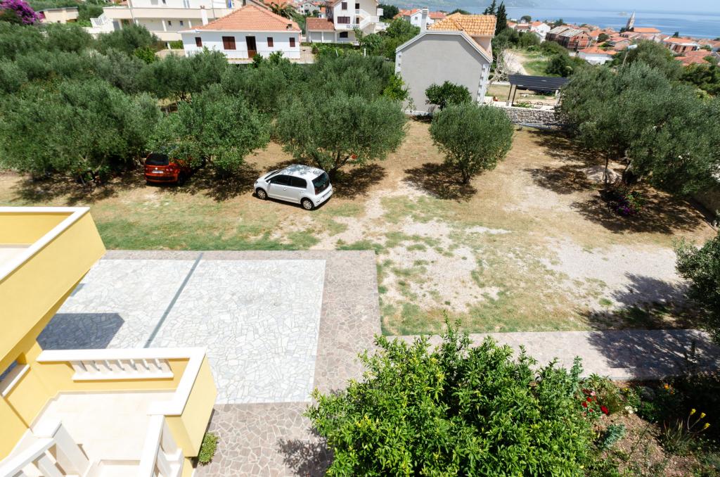 Celodenní ubytování. Rodinný dům - novostavba obklopená zelení a olivovníky a zahradou 3000m2. Pokoj a nádherný pohled se uvolní. Jsme na slepé ulici v optimální vzdálenosti od všech potřebných zařízení pro dobrý pobyt. , 10 minut chůze se dostanete na pláž, centrum, obchod, restaurace, atd. Moderně vybavené apartmány zahrnují ložní prádlo, toaletní papír, tekuté ruční mýdlo, ručníky a pravidelnou údržbu. Bezdrátové a kabelové připojení k internetu. Apartmán A1 se třemi oddělenými ložnicemi - každý má vlastní sprchu / WC, obývací pokoj, kuchyň, jídelnu a galerii s 2 ložnicemi, 3klime. Byt má také velkou terasu s deštníky a sedací soupravu. Pusenje je dovoleno pouze na terase, jinak je celý dům nekuřácký. A1 je celé druhé patro rodinného domu, má samostatný vchod a výhled na moře na jihu. A2 a A3 se nacházejí v přízemí s výhledem na moře. Na dvoře je dostatek parkovacích míst pro několik aut a dodávky.