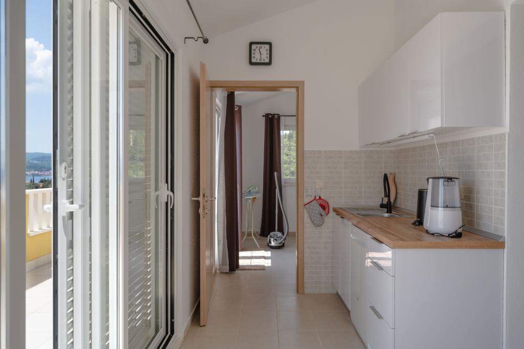 Skvělý byt. Prostorné, čisté, dobře vybavené. Velké pohodlné postele, terasa s lehátky obklopená udržovanou vegetací, krásný výhled na moře. Kolem je klid a mír. Nikdo tudy nejde, nikdo nechodí. Je to jako v ráji. Přístup do bytu je mírně do kopce nebo po schodech, ale je krátký a neunavující. Ale tím, že se vzdálíme od centra, získáme úžasnou uklidňující atmosféru, výhled a klid. Hosteska je velmi zdvořilá a pohostinná. Na všem mu záleží, díky tomu jsou takové a žádné jiné podmínky. Strávili jsme zde 2 týdny a rádi bychom zůstali déle. Nejlepší ubytování, které jsme měli v Chorvatsku za přijatelnou cenu.