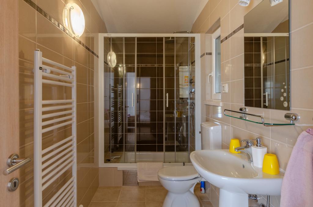 Příjemné uvítání od paní majitelky Lidie a její matky. Obrovský prostor pro parkování aut. Krásná zahrada. Apartmány vybavené PLNÝM vybavením s moderní kuchyní, která má vše: myčku, sporák s troubou, toustovač, varnou konvici, prací prostředky... Velmi pěkné a uklizené ložnice, nádherná a prostorná koupelna se vším potřebným, ručníky, toaleta, vany, naprosto všechno je tam. A nakonec obrovská terasa s moderními lehátky s nádherným výhledem na moře a blízké ostrovy. Čistší, modernější a hezčí ubytování za dobrou cenu jsme opravdu nikdy neměli. Moje hodnocení je perfektní desítka.