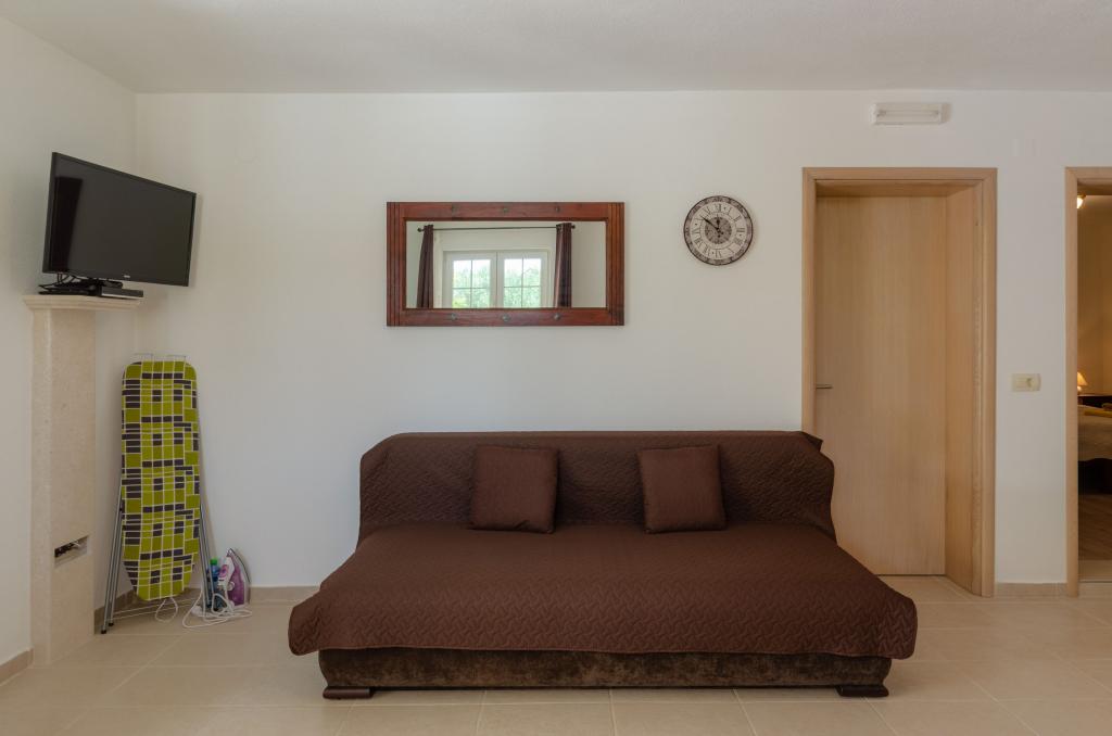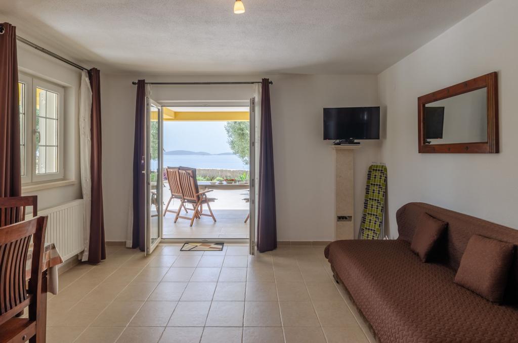 Apartmán byl velmi prostorný, naprosto čistý (s tak čistým apartmánem jsme se ještě nesetkali), plně vybavený - myčka, trouba, velká lednice s mrazákem, dostatek kvalitního kuchyňského náčiní. Paní majitelka nám v polovině pobytu uklidila, vyměnila ručníky a převlékla postele. Opravdu skvělý servis. Byla milá, nápomocná. Terasa s lehátky byla neuvěřitelně prostorná s dechberoucím výhledem na moře a okolní ostrovy. Navíc i terasa byla čistá jako sklo. Wi-fi velmi kvalitní. Snad jen postele trochu vrzají. Úžasná dovolená, rozhodně doporučujeme.