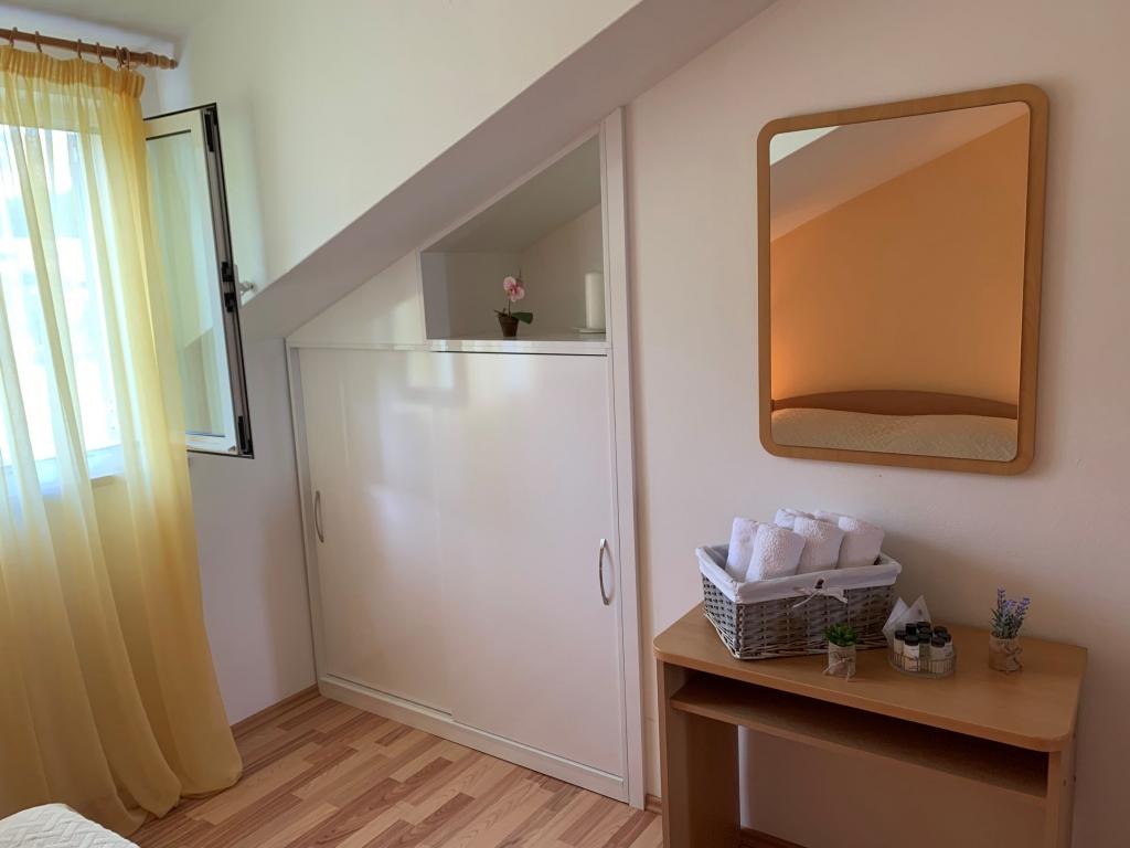 Velmi dobrá lokalita, klidná lokalita, perfektní výhled z balkonu, čistý a prostorný byt, velmi milí hostitelé. Zpočátku byl strach z blízkosti rušné ulice, ale to nevadí. Dostatek místa pro parkování, kola, stravování atd. Velmi blízko k moři, obchod, restaurace, promenáda. Doporučujeme!!