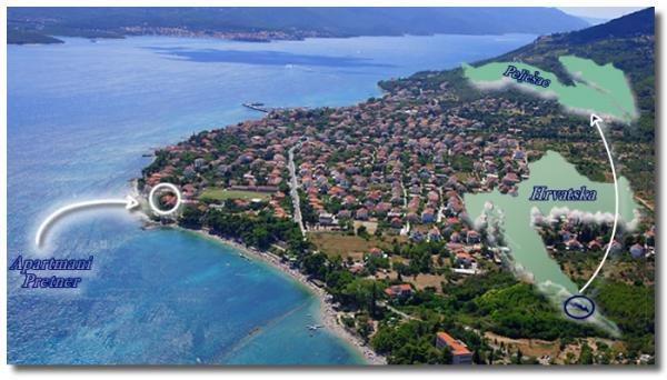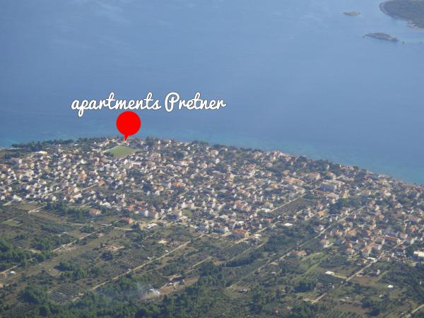 Apartmány Pretner v Orebič na poloostrově Pelješac se nachází v klidném a tichém prostředí, přímo u moře, přímo u písečné pláže Trstenica. První z 2000m2 zahrnuje jižní straně zahrady plné zeleně se středomořskou vegetací a krbem, který je k dispozici pro hosty. Na severní straně jsou stromy citrusových plodů a olivovníky a velkým parkovištěm. Každý apartmán má klimatizaci, TV se satelitním příjmem a bezdrátovým připojením k internetu.