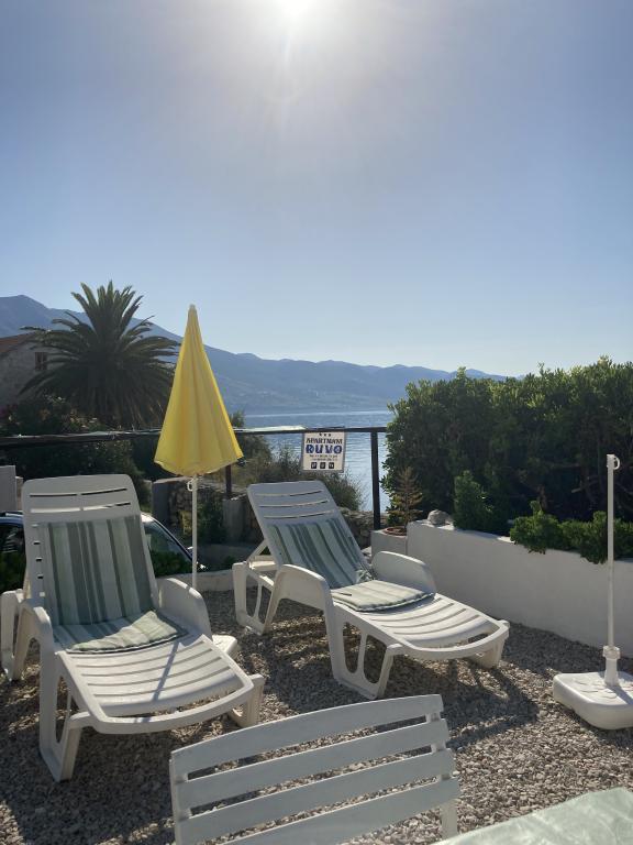 Apartmány Ruvo se nacházejí u vjezdu do Orebiće, 10 m od moře a 30 m od písečné pláže Trstenica. Apartmány mají kapacitu; 6 1, 4, 2 1, 2 a 2 osoby. Krásný a rozlehlý park před domem je vhodný pro rodiny s dětmi.