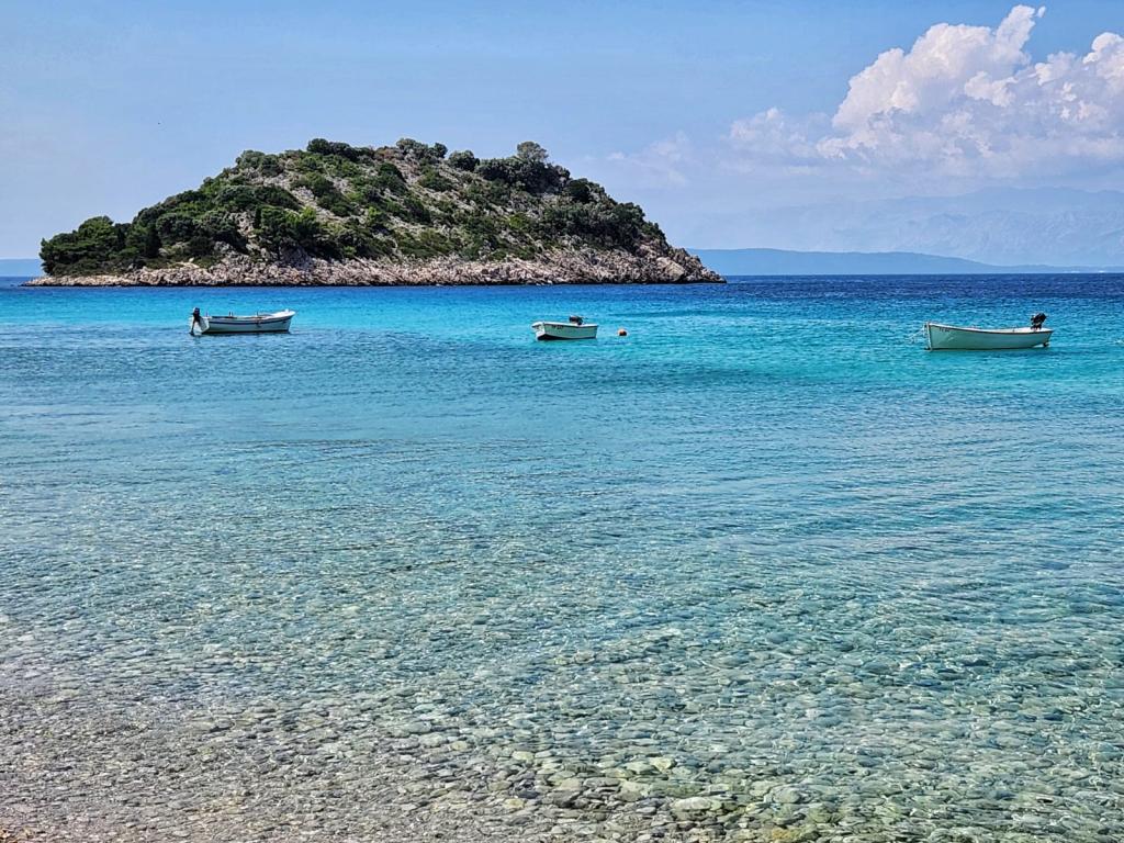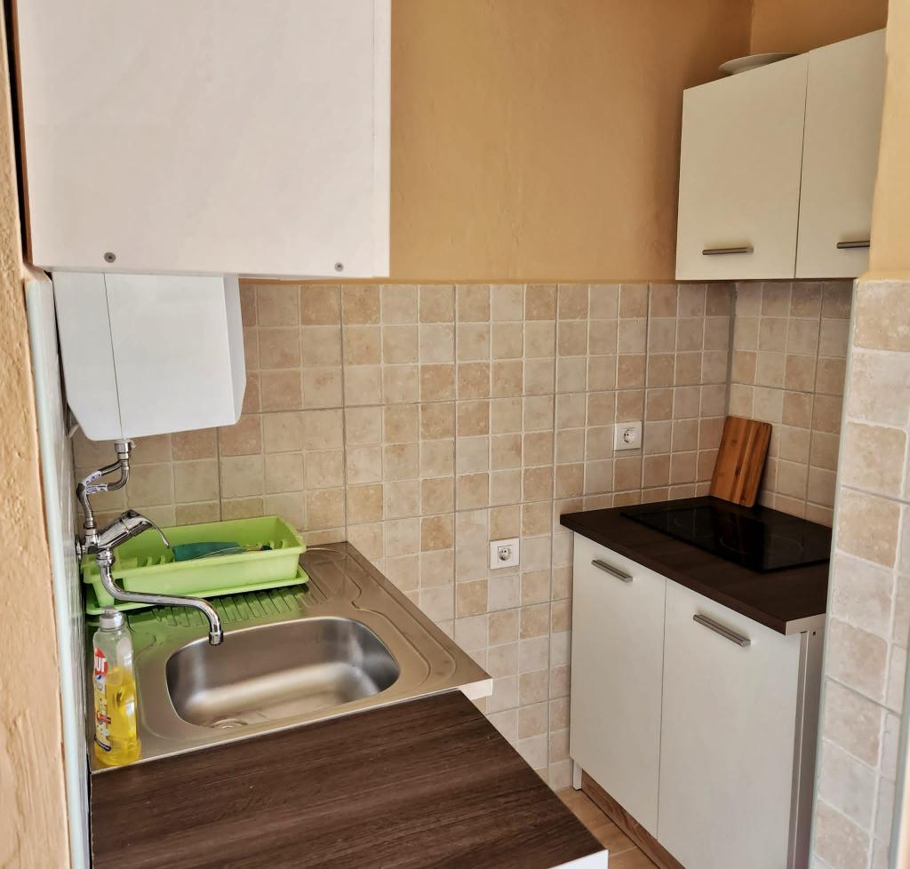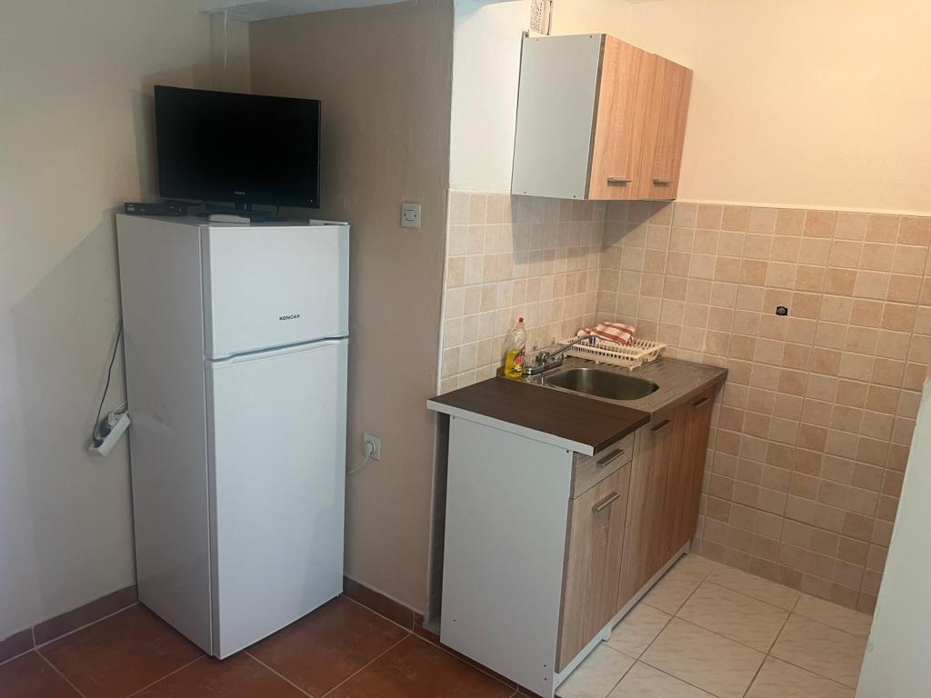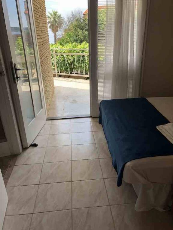 Placené cenově dostupné apartmány (€ 35 noc pro 4 osoby v období mimo sezónu a 45 EUR noci pro 4 osoby v hlavní sezóně), 20 m od moře. K bytu se dvěma balkony a dvou dvoulůžkových pokojů pochází z vnější chodby. Z jedné ložnice Byt je zapsána v koupelně a druhý v prostoru kuchyně. Teplá voda se získává ze solárního zařízení. Parkoviště pro osobní auta ve dvoře. Wi-Fi besplatan.Svi apartmány jsou klimatizované. Výhody - v blízkosti moře (pláž Trstenica), dobrá atmosféra, v blízkosti obchodů, barů a restaurací Nevýhoda - není obývací pokoj, ale se dvěma balkony