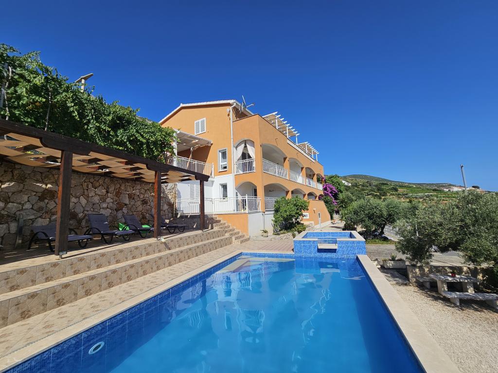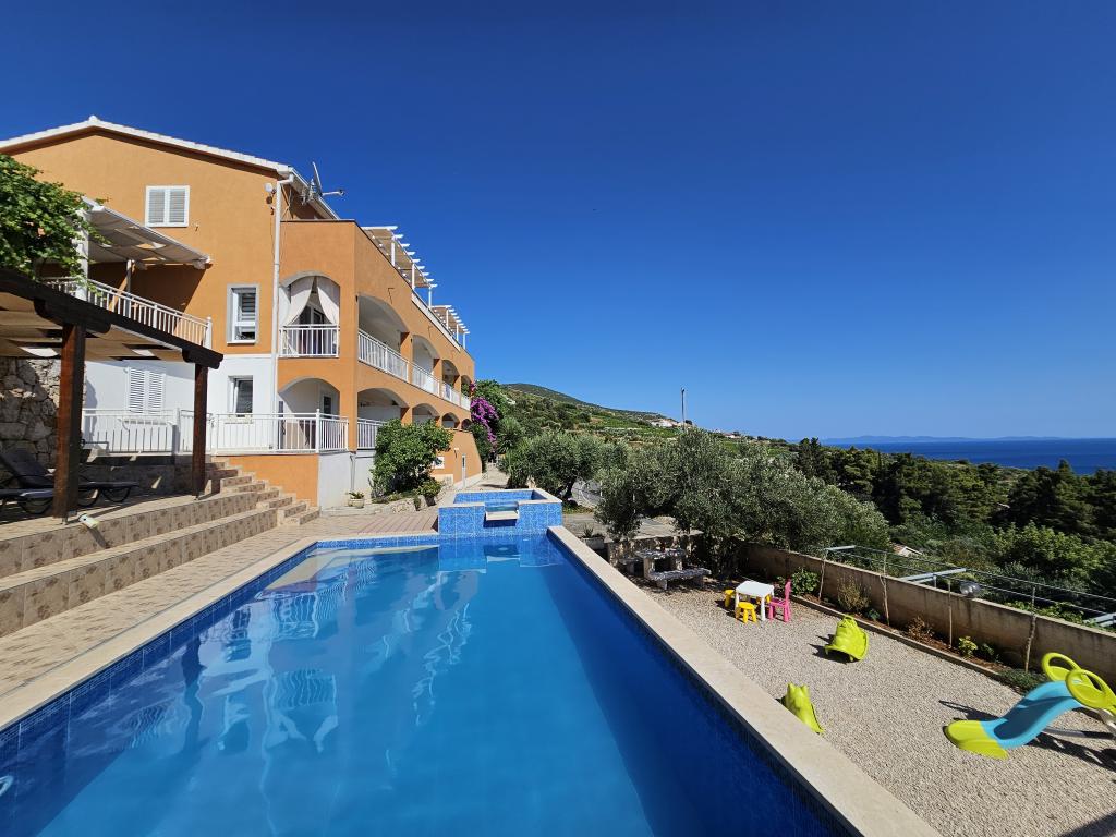 Apartmány Tolj se nacházejí v Mokalu, nedaleko Orebiće. Apartmán má bazén a gril.
