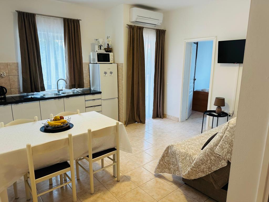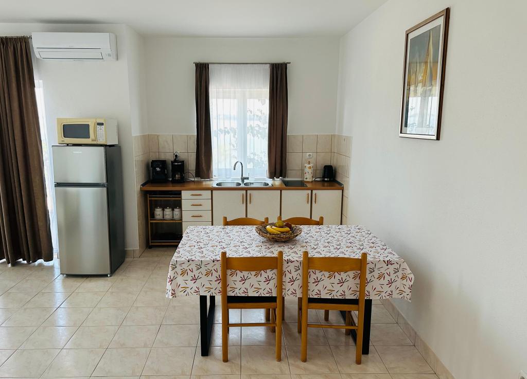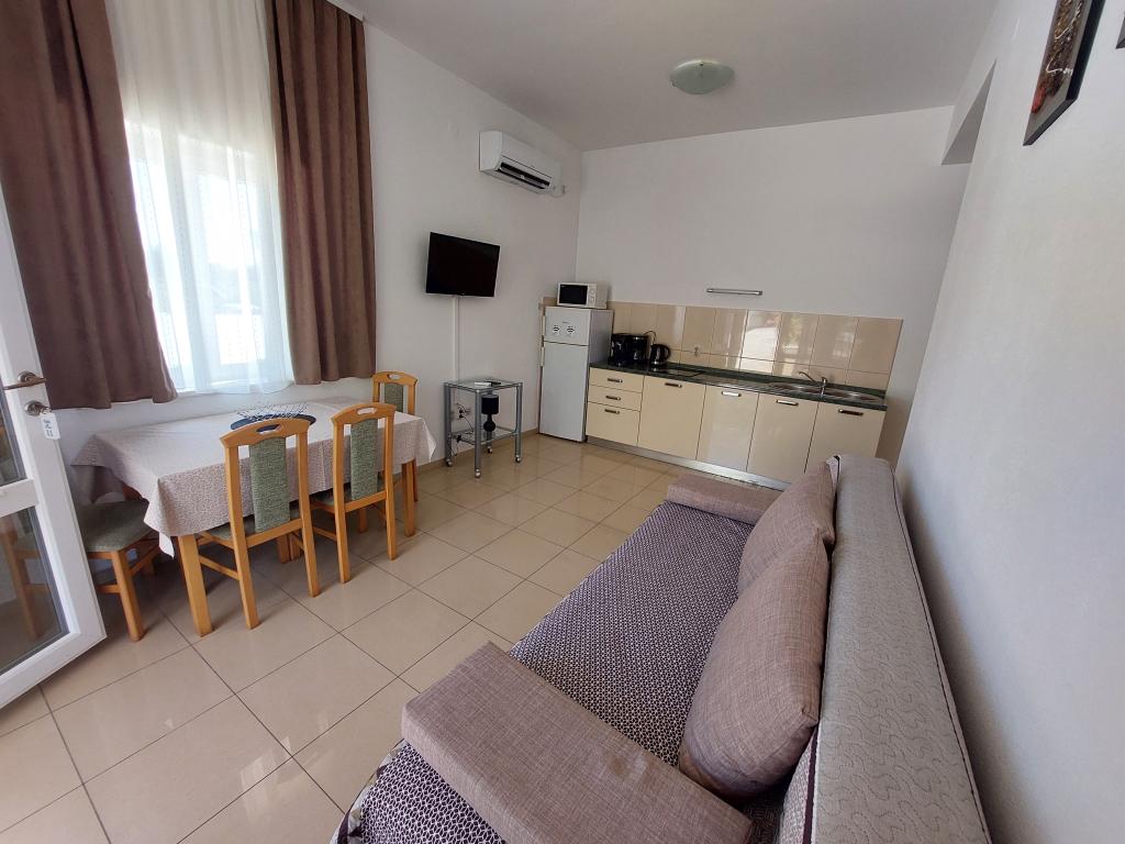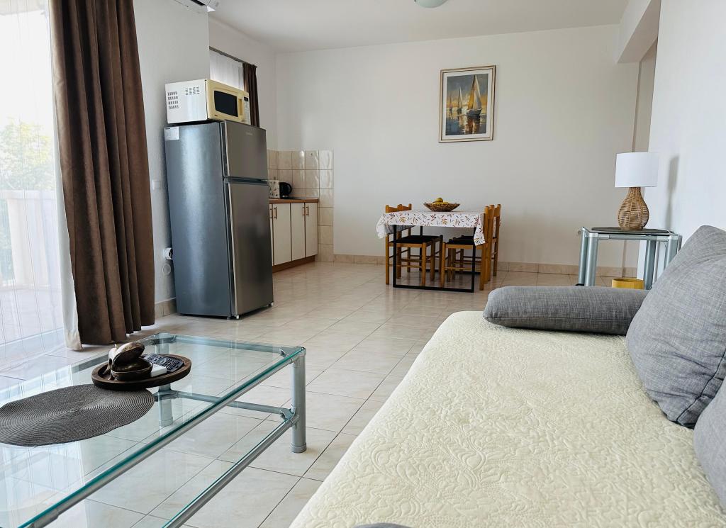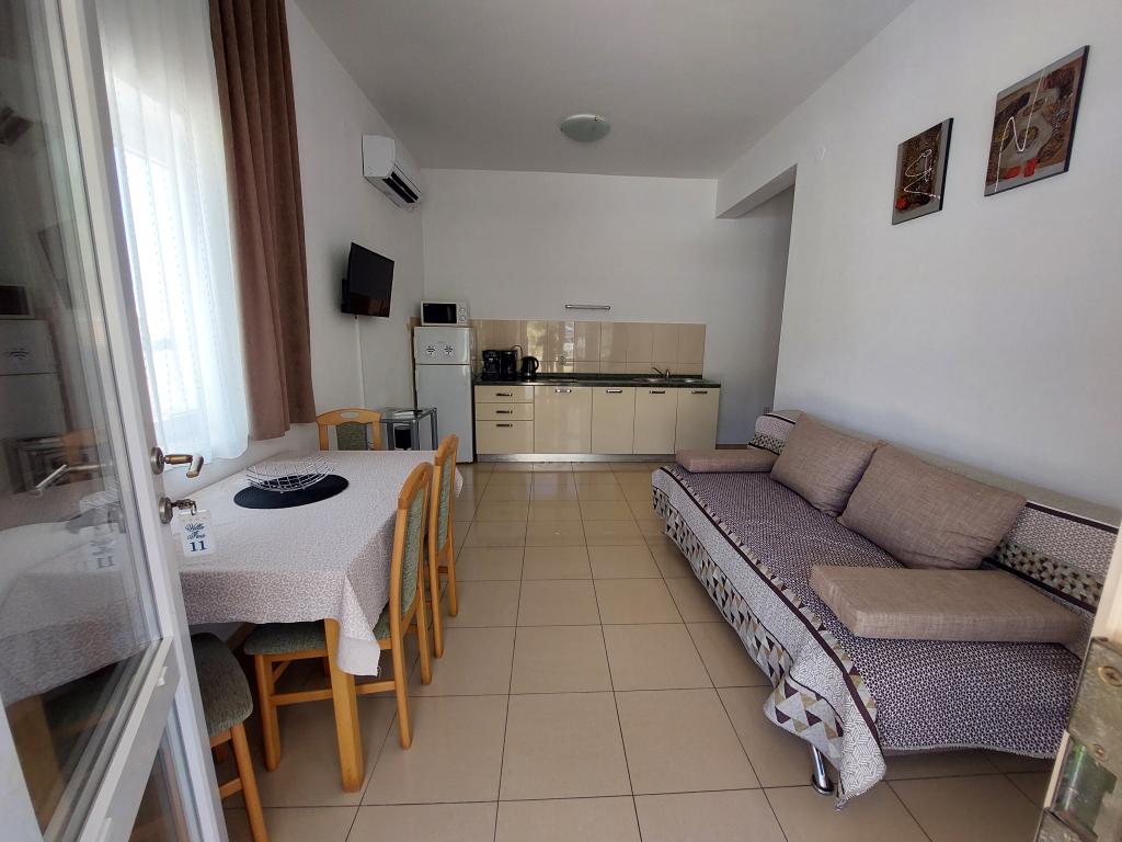 Plně vybavený apartmán, který se nachází v první řadě k moři. Objekt se nachází 20 metrů od pláže a 10 minut chůze do centra.