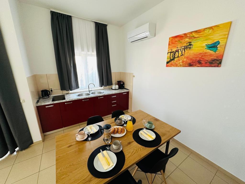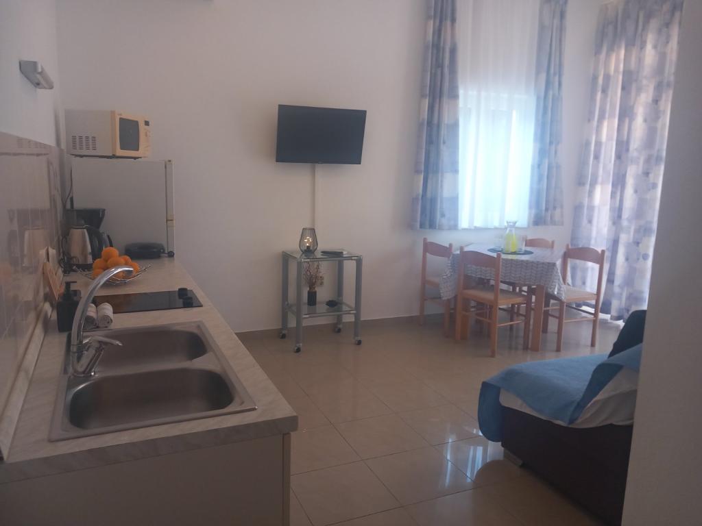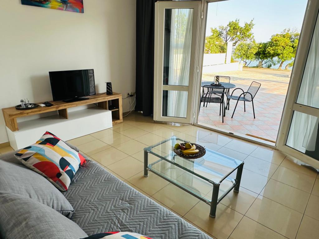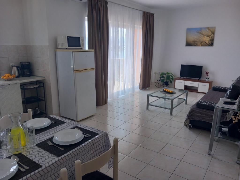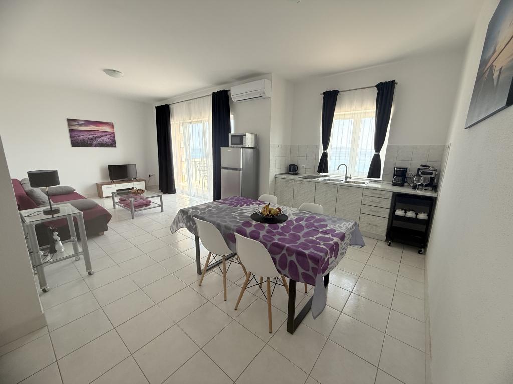Plně vybavený apartmán, který se nachází v první řadě k moři. Objekt se nachází 20 metrů od pláže a 10 minut chůze do centra.