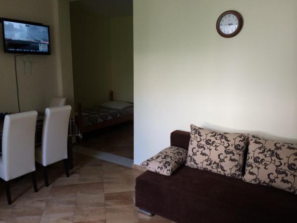 Apartmány jsou nově zařízené a moderně vybavené kvalitními televizory a vysokorychlostním internetem. V bezprostřední blízkosti (méně než 50 metrů) se nachází supermarket, bílá prodejna, obchod s textilem, pekařství, kavárna, restaurace, fotbalové hřiště, autobus, zastávka autobusu. Objekt se nachází 150 metrů od hlavní písečné pláže. Hlavní promenáda u moře je 100 metrů od objektu.