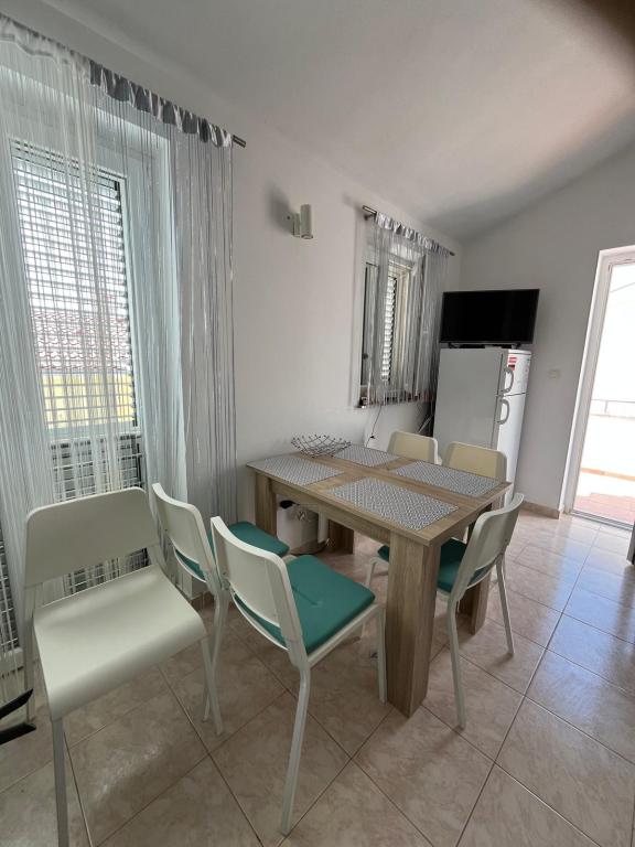 Byt v prvním patře. Plně vybavená. V klidné části města Mandre. Vzdálenost 200 metrů. Kapacita až 6 osob. V blízkosti RCA, Novalja a staré město. Na pláži nabízí výhled na ostrovy Maun, Silba, Maun a Olib a Mandre je považován za jeden z nejkrásnějších míst na Jadranu. Je vhodný pro rodiny s dětmi.