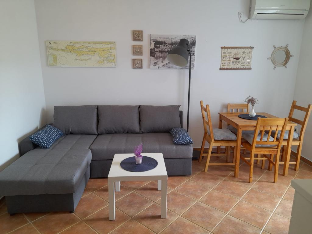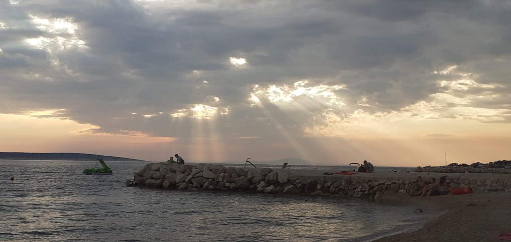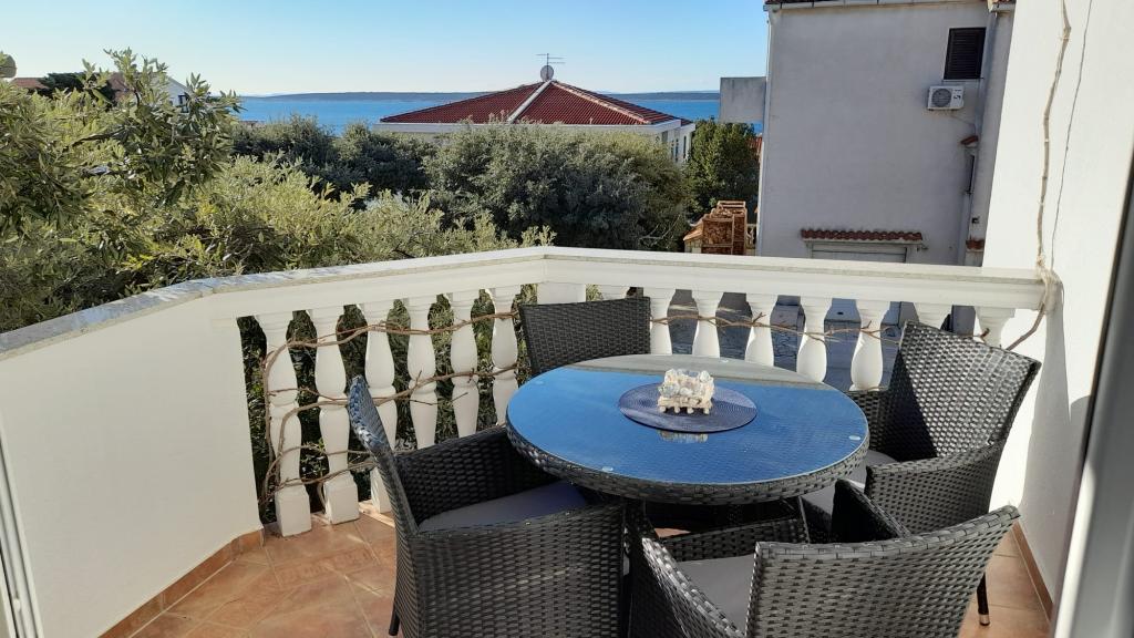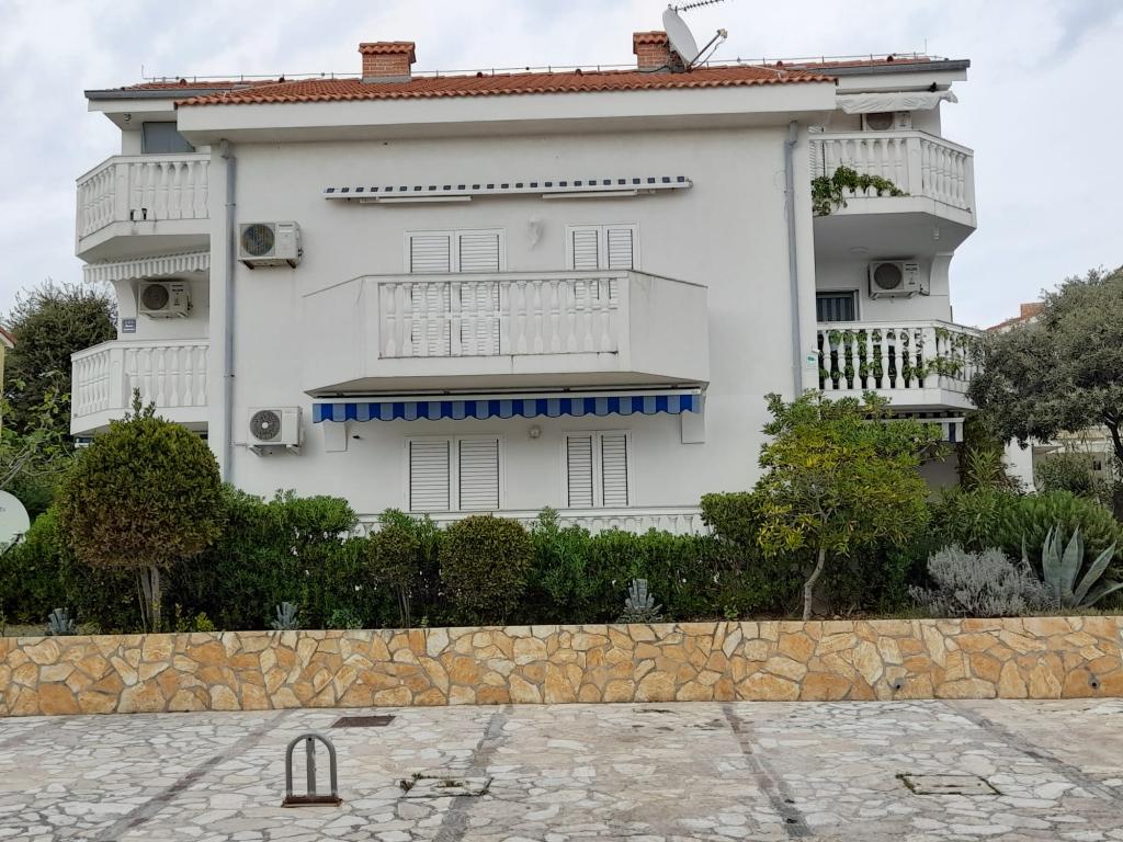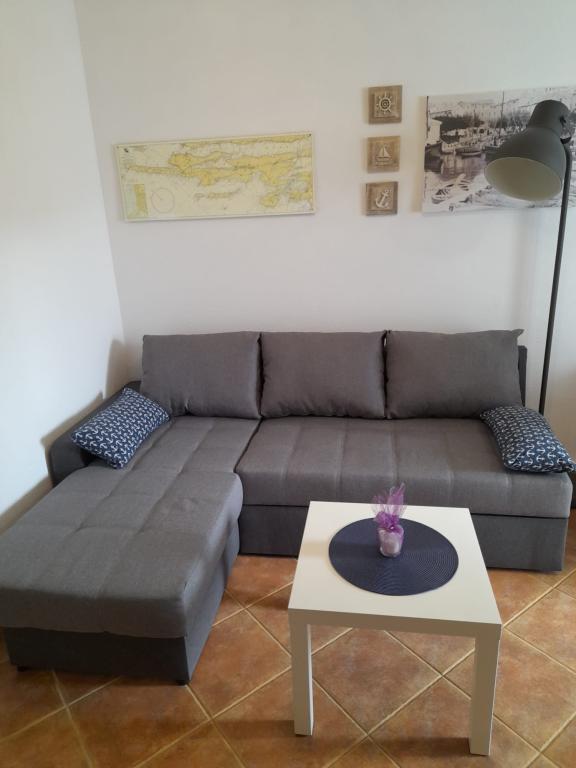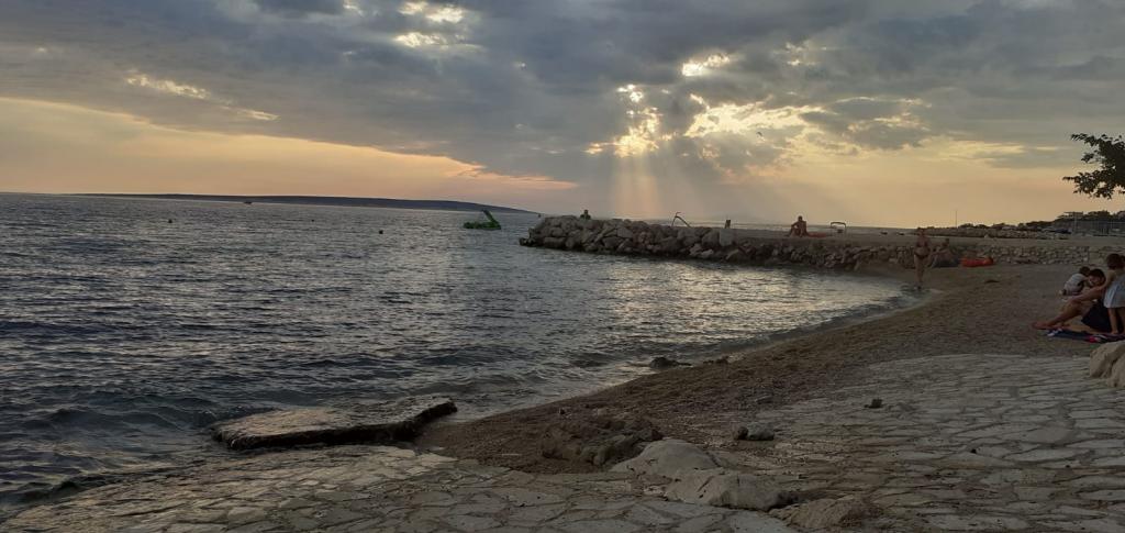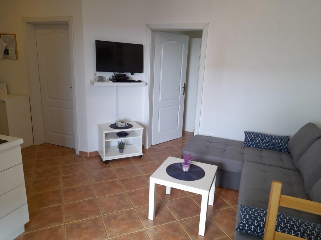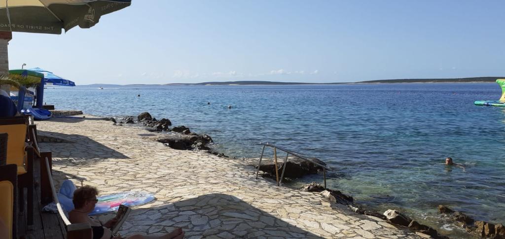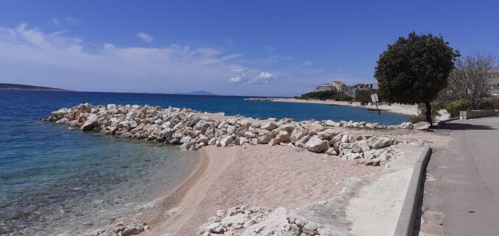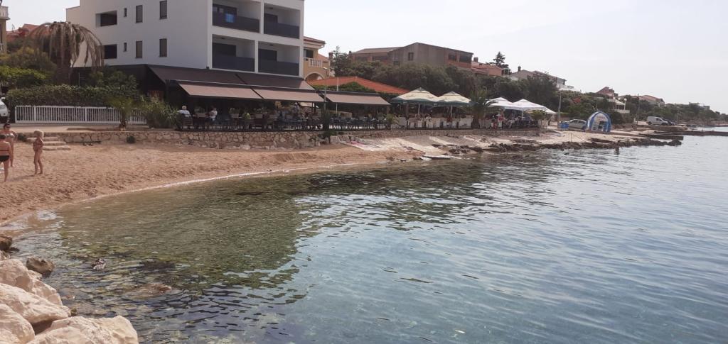 Plně vybavený apartmán v klidném místě Mandre, na ostrově Pag. V blízkosti pláže, parkoviště, klimatizace, gril, výhled na moře, sítě proti komárům, wifi, satelitní TV, tv.