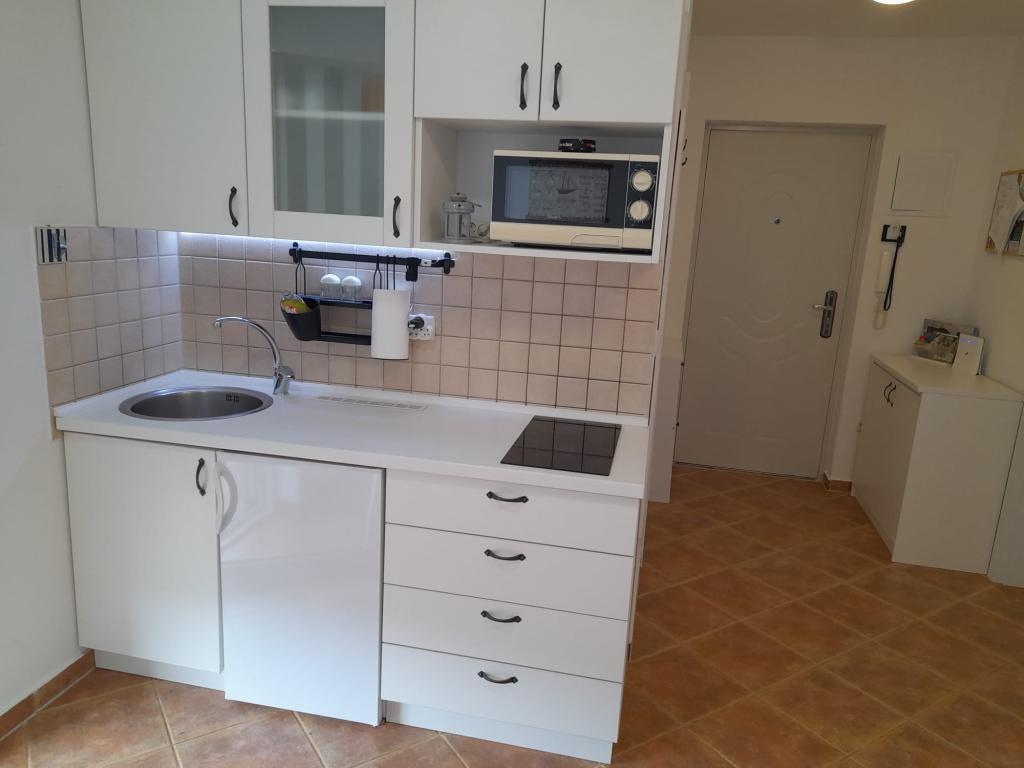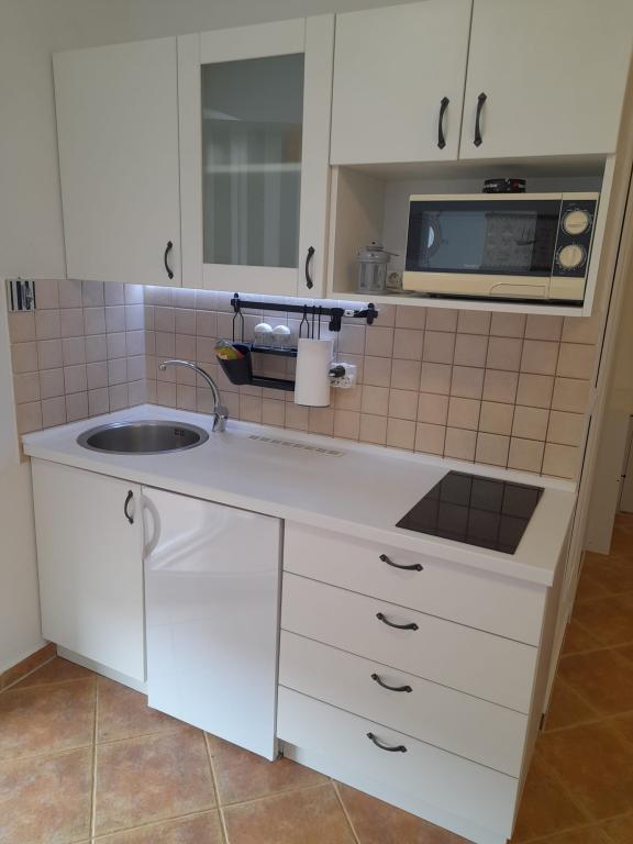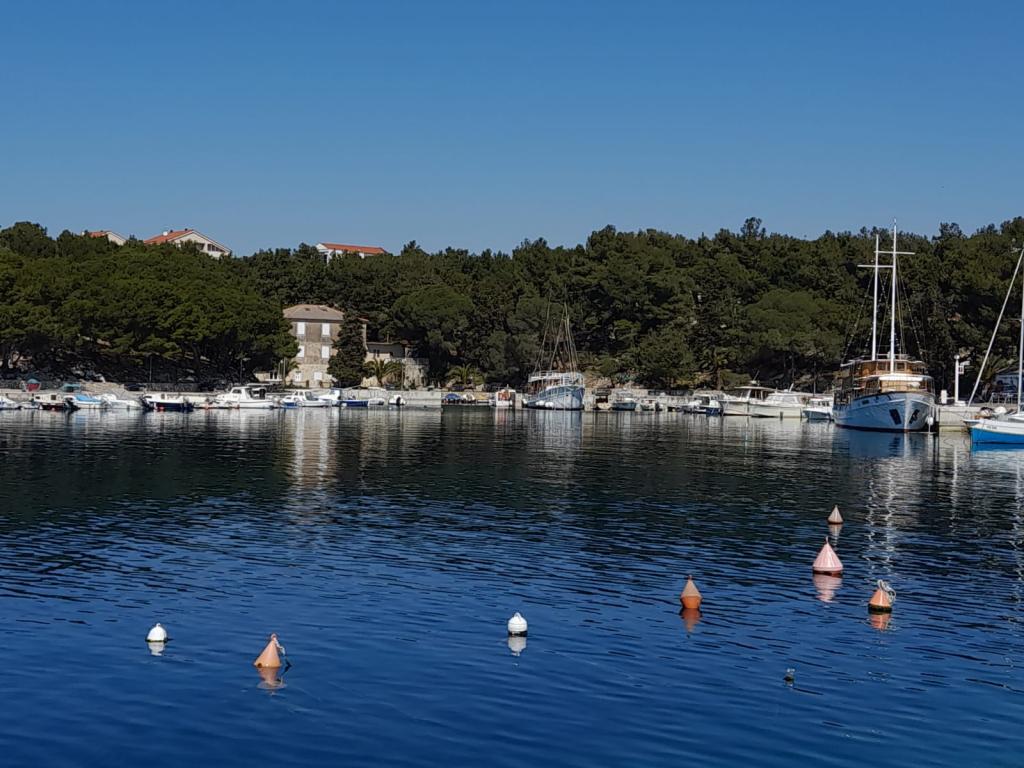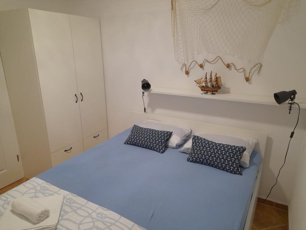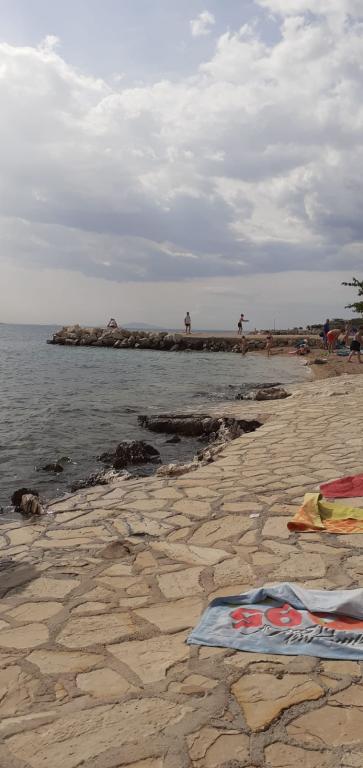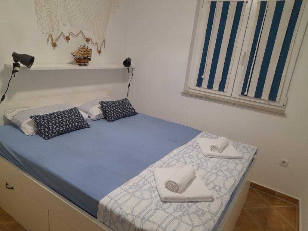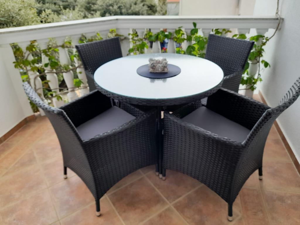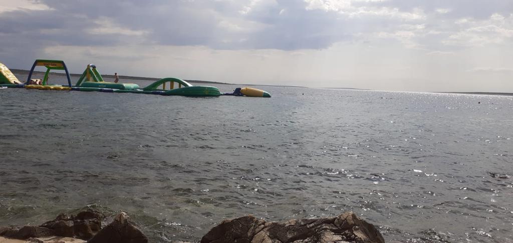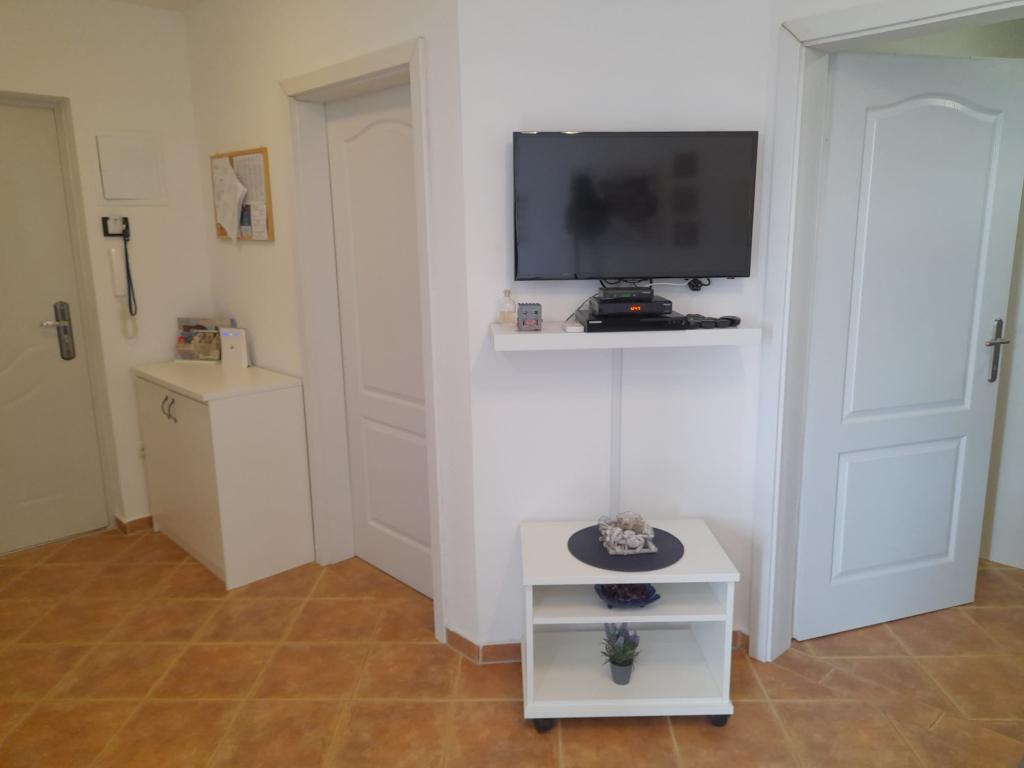 Plně vybavený apartmán v klidném místě Mandre, na ostrově Pag. V blízkosti pláže, parkoviště, klimatizace, gril, výhled na moře, sítě proti komárům, wifi, satelitní TV, tv.