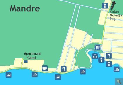 Mandre - náš velký městečko se nachází v blízkosti Novalja a Pag. Skvělá poloha objektu - v blízkosti pláže, cca 100 m, cca 500 metrů od centra města. Dobrý standardní byt s velkou terasou s výhledem na moře. Majitelé - velmi pěkné. To byl náš šestý dovolená v Chorvatsku, na ostrově Pag třetí a druhé místo v Mandre. Jsem si jist, že opět se dostáváme k Apartmani Cikac.