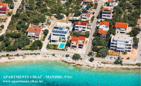 Apartmánový dům Cikač a se nachází pouhých 50 metrů od moře. Skládá se ze čtyř apartmánů pro 4 osoby (2 +2 lůžka, 45 m2) se nachází v prvním a druhém patře a jeden apartmán pro 6 +1 osob (80 m2) v přízemí. Apartmány jsou vybaveny klimatizací, TV se satelitním příjmem a pozemní příjem, chladničky a mrazničky a velké balkony s výhledem na moře. Ve parkování ve dvoře a krbem. Krásná pláž přímo pod bytem.