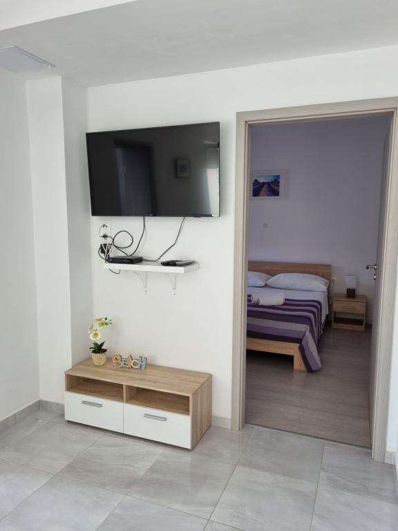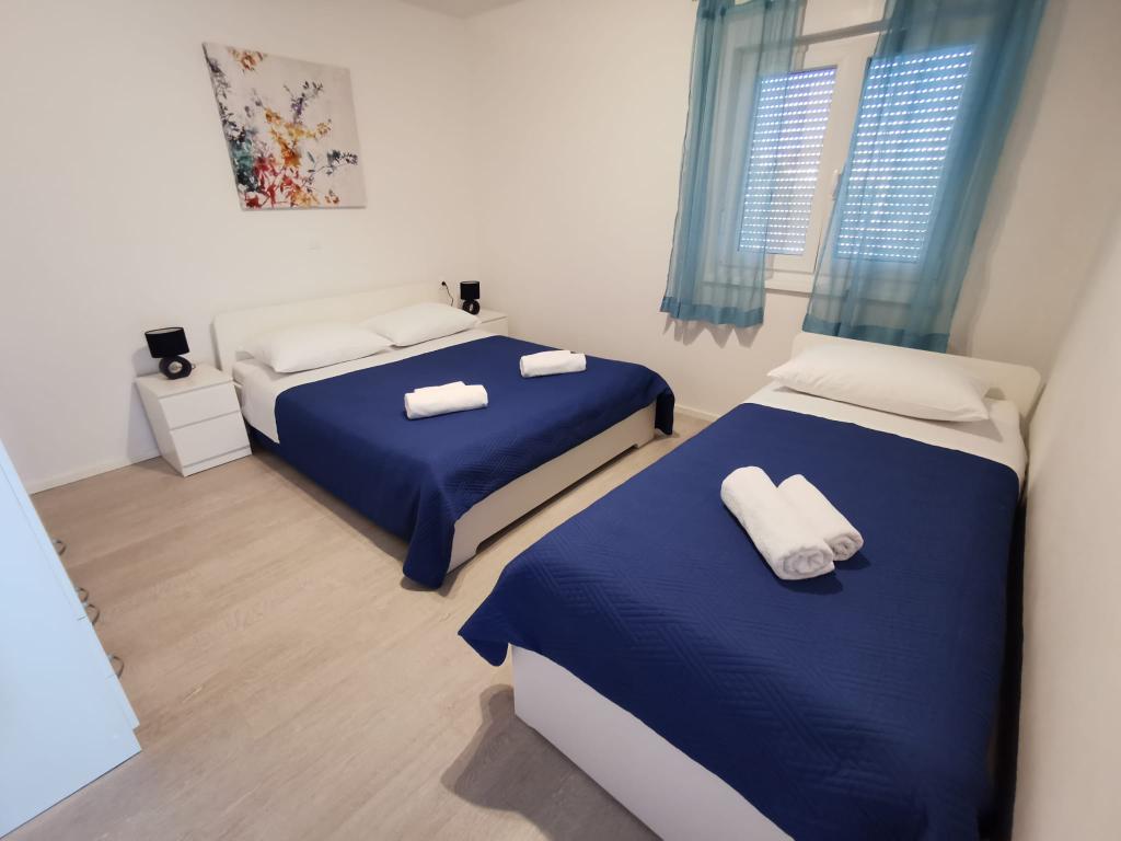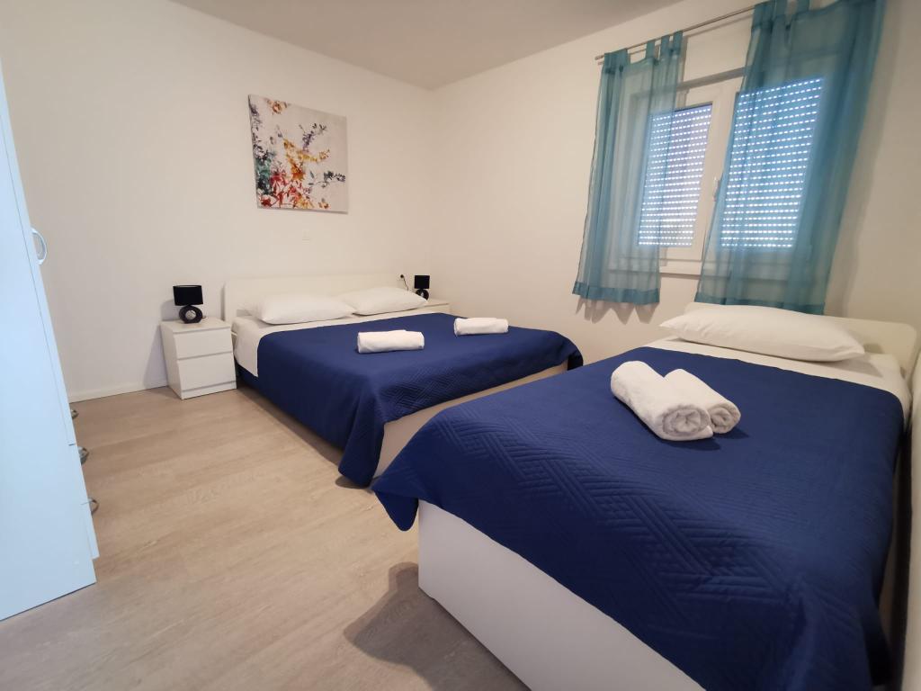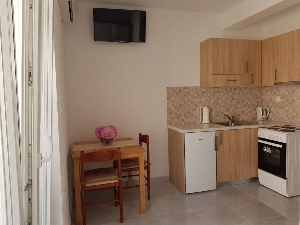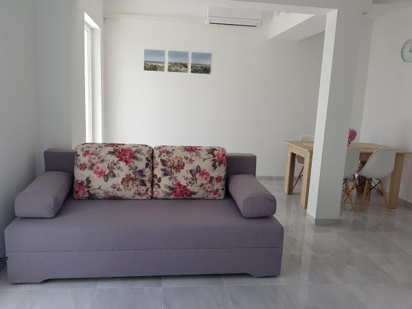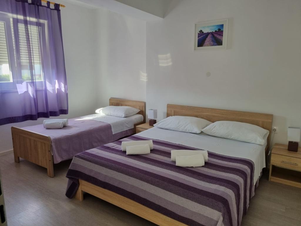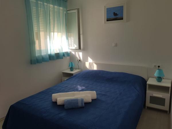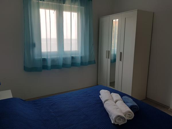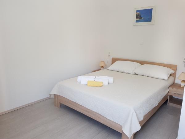 Naše apartmány se nacházejí u moře, v centru Mandri, na ostrově Pag. Všechny apartmány se nacházejí v 1. patře našeho rodinného domu, takže nabízejí krásný výhled na moře. Apartmány jsou nově zrekonstruované a vybavené internetem, klimatizací, TV/SAT, plně vybavenou kuchyní a navíc můžete na všechna okna nasadit sítě proti hmyzu spolu se žaluziemi jako ochranu proti komárům. Každý apartmán má vlastní parkovací místo a všichni hosté mohou využívat gril na zahradě. Přes náš dvůr se dostanete přímo na pláž, takže pro příjemnou dovolenou na slunci potřebujete jen ručník přes rameno! Moc se těšíme na váš příjezd!
