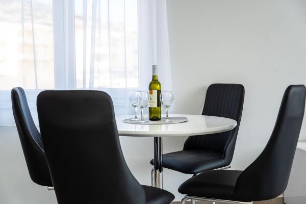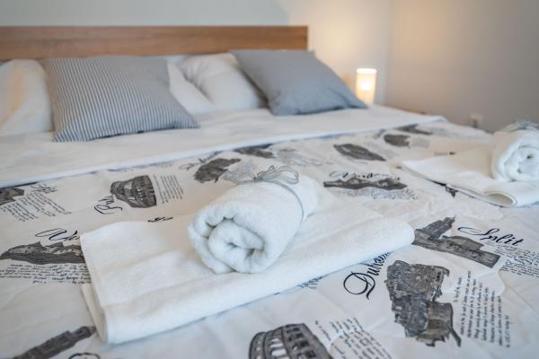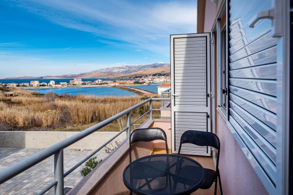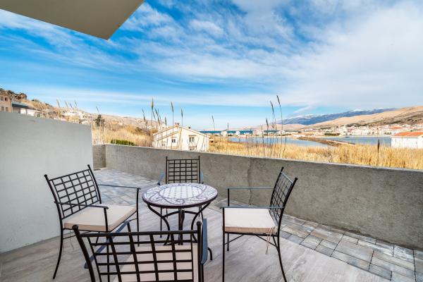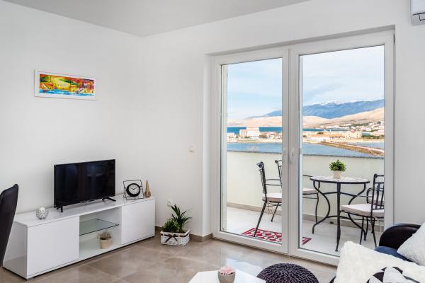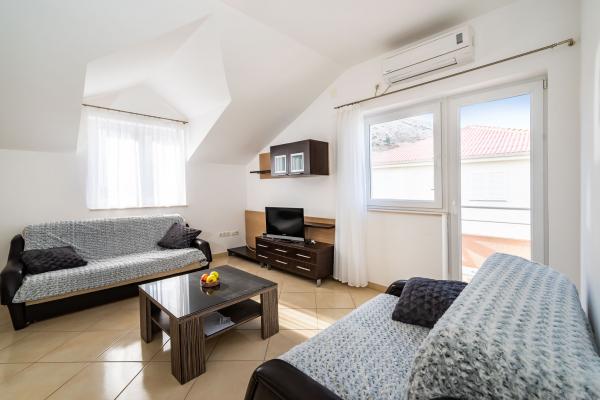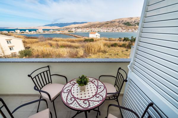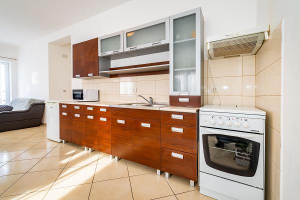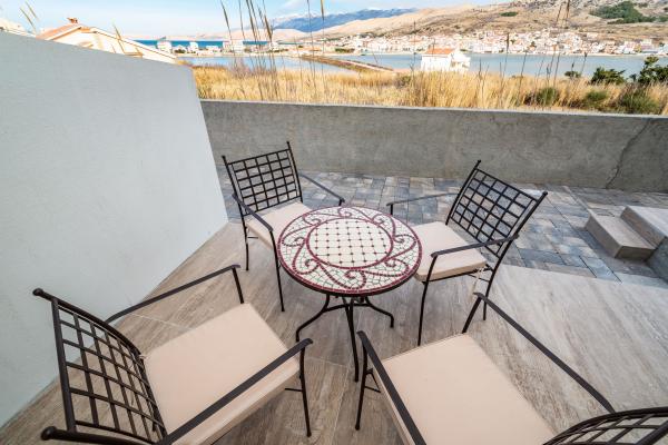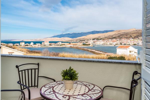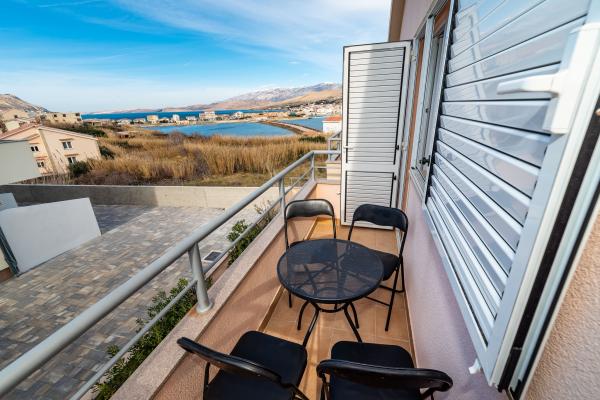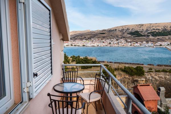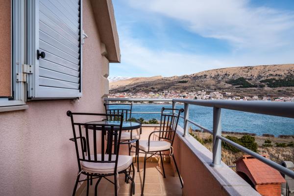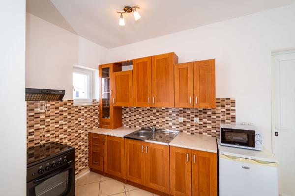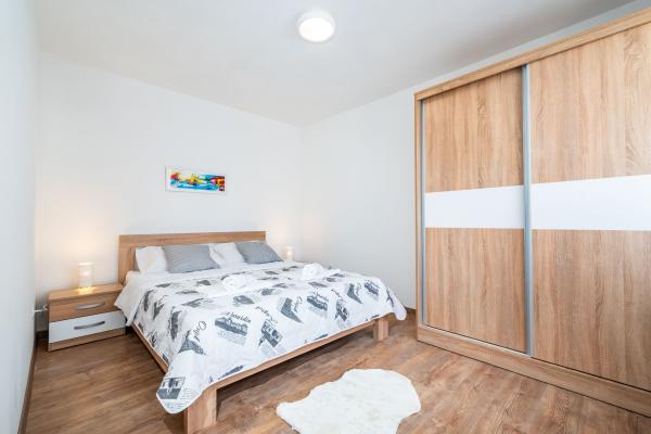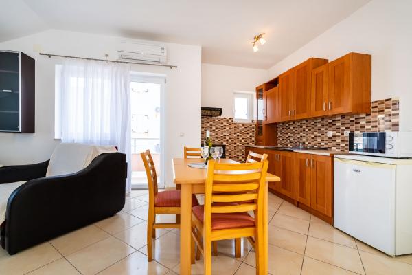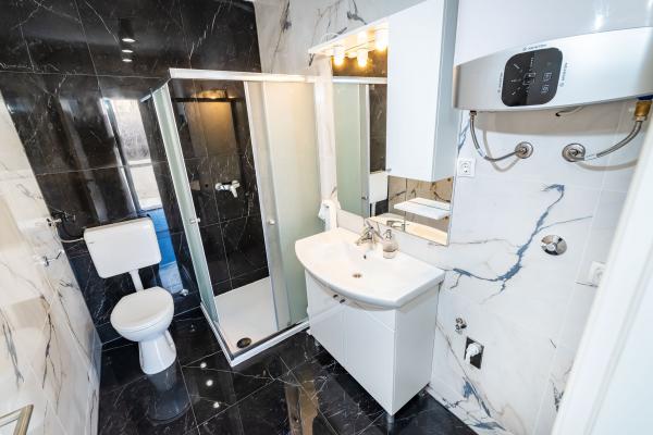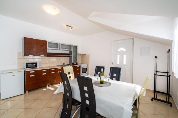 Vynikající apartmány v krásné lokalitě s výhledem na moře a město. Plně vybavené veškerým potřebným obsahem, parkoviště pro auta, wi-fi, vše, co potřebujete pro vaši příjemnou dovolenou. 7 minut na pláž, 10 minut do centra města a restaurací. Nejbližší obchod je 5 minut chůze, vše je dostupné za 10 minut pěšky. Apartmány 1 - 6 se nacházejí v jedné budově a jsou zcela totožné. Tři byty jsou v přízemí (1 až 3) s velkými terasami. V prvním patře jsou tři byty. Všechny mají výhled na moře. Apartmány 7 a 8 se nacházejí v 1. patře druhé budovy, která se nachází hned vedle první budovy. Všechny apartmány jsou moderně zařízené a hosté mají k dispozici vše, co potřebují, včetně mikrovlnné trouby, lednice, wi-fi, rychlovarné konvice, kuchyňského náčiní, ručníků... K dispozici je gril se stolem a židlemi pro společenské vyžití.