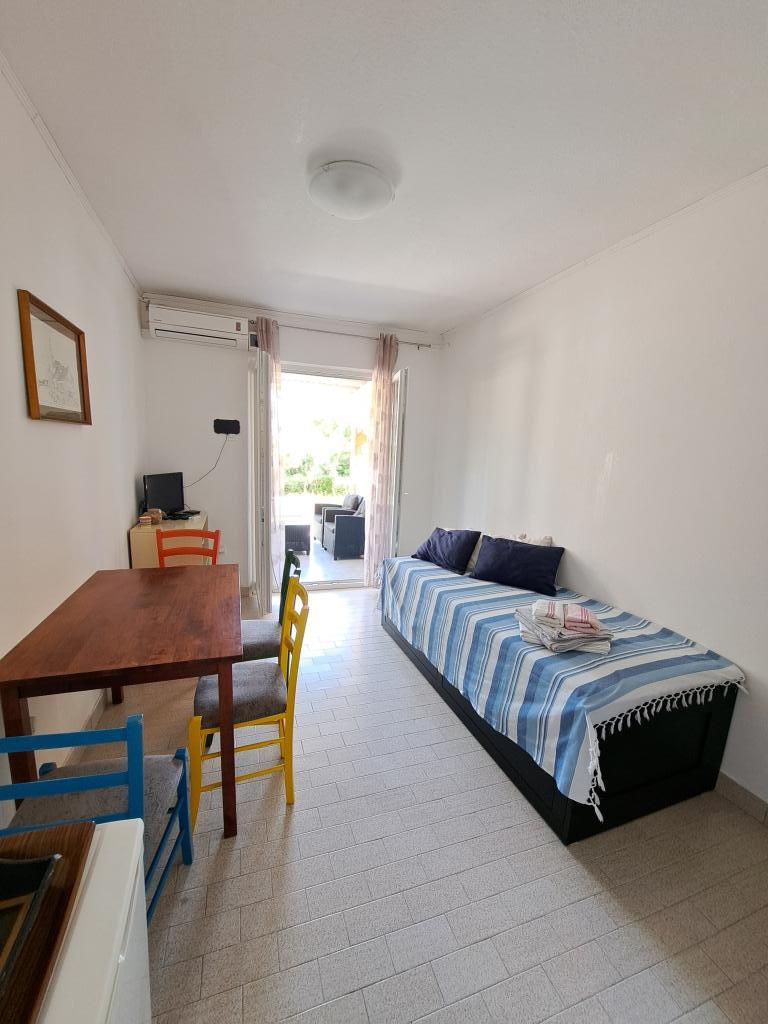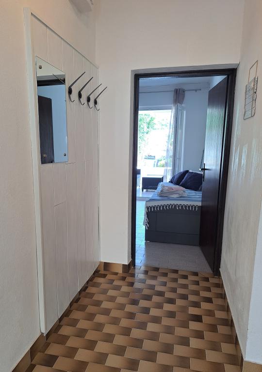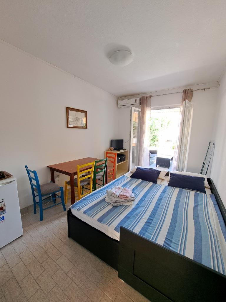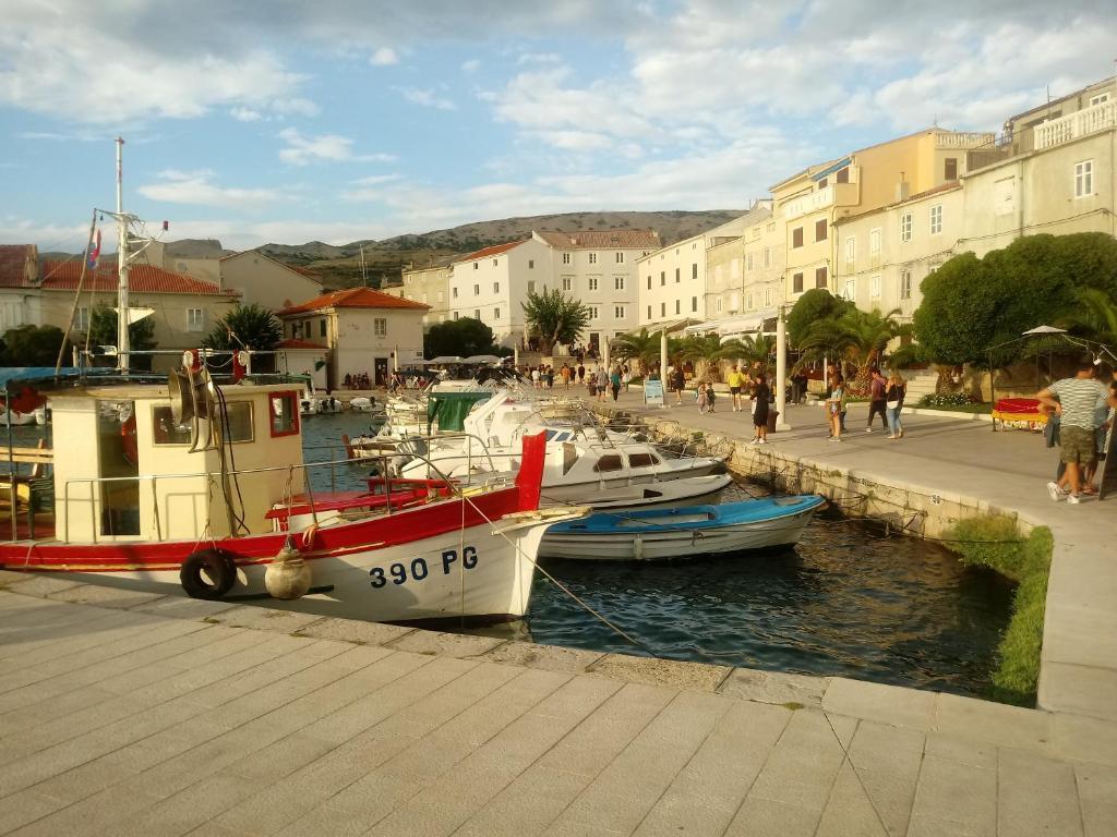 Apartmán se nachází na ostrově Pag, v klidné a tiché ulici Ljubačka 7, v rodinném domě. Skládá se z ložnice, obývacího pokoje, koupelny, kuchyně a chodby. V obývacím pokoji je rozkládací postel (po rozložení má rozměry dvoulůžkové postele 160x200). Parkování zdarma je před domem. Centrum Pagu a městská pláž Prosika jsou velmi blízko (cca 900 m nebo 10 minut chůze), zatímco dvě malé pláže jsou od domu vzdálené 100 m.